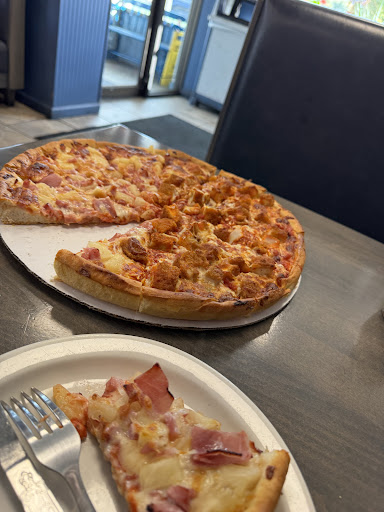 Who knew I needed to experience Greek style pizza? Traveling from coast to coast for work, having tried pizza everywhere in between⌠this pizza is whole heartedly top 5 best pizza Iâve ever had. The crust absolutely blew my mind, it was light and crispy. I ordered half pineapple and ham and half buffalo chicken. I meant to take half of it home, it did not make it out of the pizzeria. The crust along with being so light and crispy in the outside and soft and light in the inside , has a hint of buttery goodness that hovered around my olfactory senses for the next hour. This place is an absolute gem. As I ordered and sat to eat, I saw multiple people come in, each one was greeted by the family that owns and runs this joint with their first name, genuinely happy to see them. This pizza joint makes me wish I grew up close by, the food, people and culture...