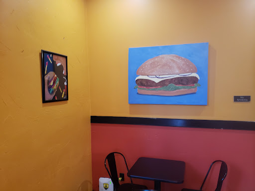 Food: I've had quite a few things from GoldBurgers and they're ALL delicious. Above the counter is the vast menu with all of the options from juicy burgers, chicken burgers, falafels, hot dogs, sweet potato fries and the like. However, at eye-level there's a chalk board where the specials are! That's what you want! Those specials constantly rotate and they're all based off of movies! My latest acquisition was an incredibly spicy chicken cheesesteak based off the movie Hoosiers! So freaking good, filling and just hit the spot! I've had double-burgers here that had potato chips on it, chicken burgers and this place just does not miss!