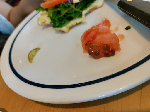 But when we went back today around dinner time, we got a different waitress whose very first words upon arriving to our table was a VERY nasty and unprofessional comment about another younger waitress. The entire time, our waitress kept giving us dirty looks and looking very disgusted at us any time we had an interaction with her. She brought us water in dirty cups and silverware. We asked for a replacement, and she brought us another dirty cup. I gave up and didn't bother asking for another. While we were waiting for our food, we overheard the same waitress being extremely rude to another customer sitting just behind us, griping to them about the fact that they were looking for a senior discount. Though we ordered the same meals that we got just a week ago (which had been quite lovely at the time) the meals today were not made the same, the vegetables in mine looked strange and the cheese sauce on top of my omelette looked like it had been reheated and that it has been sat there for a long time. We immediately felt sick after finishing. I'm reasonably certain now that I may have food poisoning as.. well, let's just say, I can't leave the bathroom.
