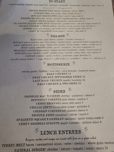 Read moreHeard great things about this place, so I stopped by Friday 10/20/2017 for lunch and ordered a salad at the bar. The bartender was friendly, I told him I was there to check the place out for our office holiday party. Surprisingly, it took 40 minutes to get my salad. The bartender apologized and said the kitchen was backed up. (Hmmm … I wondered. If they can’t handle a salad in a timely manner, how confident am I that they can handle a party?) I asked the folks sitting on either side of me at the bar what they thought of this place. They said the food was great and the service is normally better than this (I see a few other reviews here about slow service). The bartender apologized for the unreasonable wait time and ended up not charging me for the salad, which I appreciated. The quality of my salad (with grilled chicken) was indeed spectacular. High points for that. The bartender handed me a business card and asked me to contact Alex to book a party, so I immediately emailed Alex from my phone (willing to give them a chance to redeem themselves). But alas … 3 days have passed without a reply. I also submitted an inquiry via the website contact form the same day, but no response from that either. It’s too bad, because the food and atmosphere are perfect, but the slow service and lack of response have made me decide to have our party elsewhere.