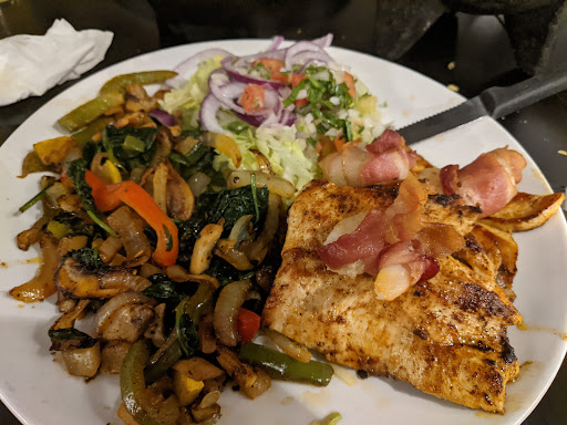 She had the Surf and Turf which came with a wide choice of sides. The meal came 2 portions of Beef, 2 portions of Chicken and 3 bacon wrapped shrimp. The side of sauteed veggies included fresh spinach, zucchini, summer squash, onions, mushrooms and peppers.
