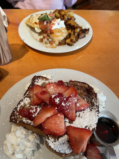 Let's start with the atmosphere dark, loud. The table we sat at there is dirt built up where you pull out for a leaf to expand the table and I don't mean a little dirt I'm talking a 8th of a inch of long time black build up. The has more choices then I cooked in meals in my apartment in years of living there. To many choices with no meals that allows a really big breakfast. Service well even though there nice I ask for water and coffee and my two friend ask for water, we received our water but after drinking still didn't get my coffee. Two people who came in well after us got coffee. When she came up and ask my friend if he needed more water even though I had a empty cup I ask again if I could please get coffee. We got our water but took another 5 mins before I finally got a coffee. Food well my sausage link was either one piece cut into three small thin pieces or skinning links which one was cut in half so either I got one cut into three pieces or I got 1 and a half pieces, home fries where really good, I ask for a extra egg because I like eggs but only got one slice of toast which butter was slap on cold toast since it didn't melt and could tell the toast sat awhile. The sunny side up was ok more running whites then I liked but not bad, bacon ... Not impressed I like it crispy no doubt but not burn. I ask for a side order of hash which I got half way through my breakfast but smelled like bake beans and absolutely tasted like baked beans not corned beef hash..... Maybe that's why they call it the big bean, My blueberry pancakes no this is where I get upset they were pretty good up to quarter of it left the last two bites I took had a really strong taste of garlic yeah garlic I might not eat another blueberry pancake in a long time I had to go home brush my teeth That's how much garlic I could taste. They may be have been good in the past but I wouldn't wasting money or time going down there try to find some other place I'm glad I ate there now I know better than...