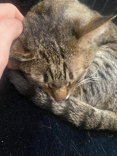 The cat room for the Tipsy Tabby is tiny. It is maybe a quarter of the size, if not smaller, of others I’ve been to while accepting the same amount of people. The result is a cramped experience of awkwardly sitting near strangers while people take turns petting the one cat that isn’t sleeping out of reach. In total there were 4 cats visible in the room.