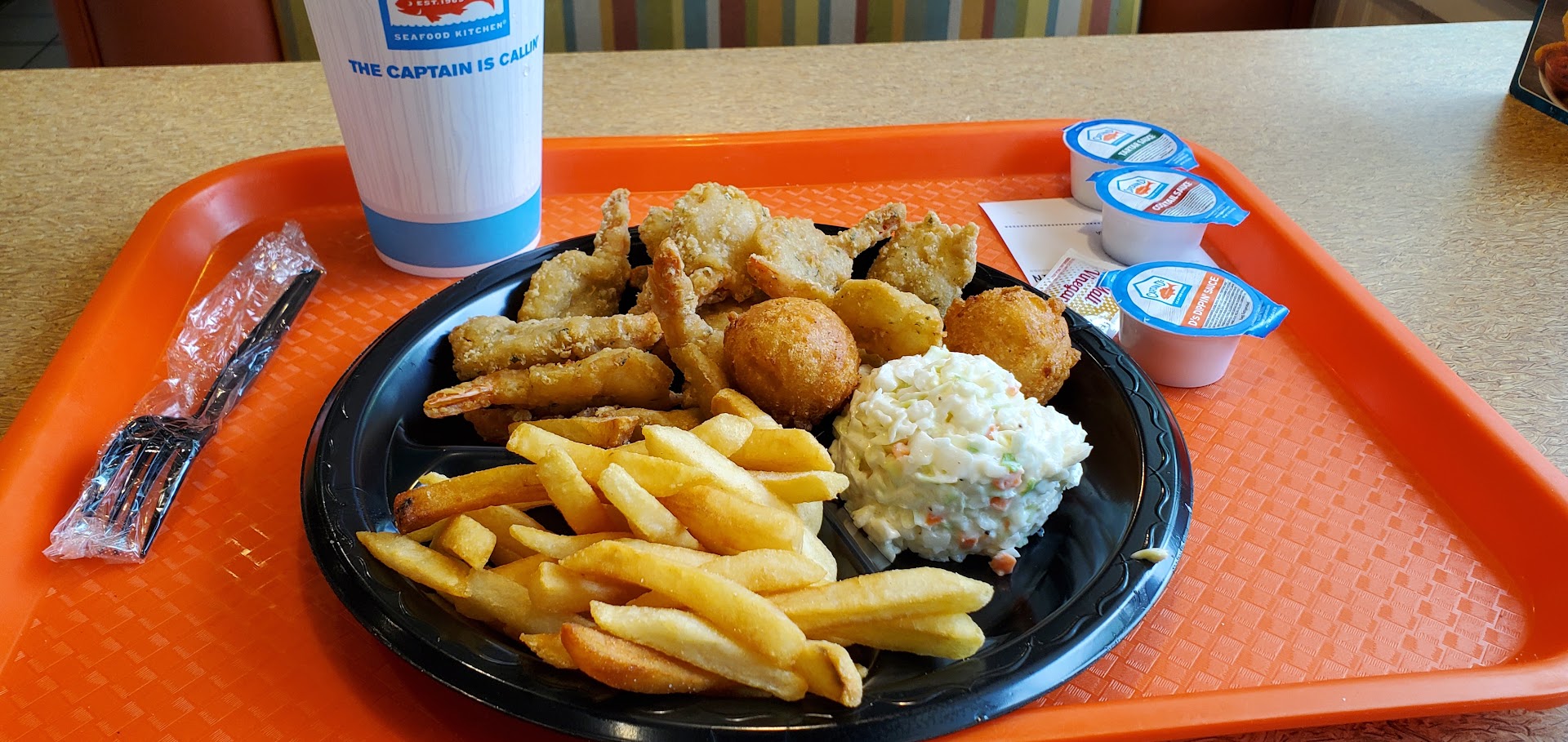 ย ย ย Read moreI don't really go to Captain D's that often (only been there 3 times in my life), but the last time I went was honestly a blessed experience. I was on my school lunch break with the boys, and we decided to switch it up. We drove on down to Captain D's as soon as we got out of class, and headed on through the doors. I was greeted by the sweetest old lady I've ever met (outside of my family, of course). I told her I wanted the butterfly shrimp, and just like that, she put in my order. I paid 9 dollars for my meal and my food came out nice and quick. My friends and I sat down at a big table, and let me tell you, when I saw my food, it was like God was smiling down on me that day. Looking at the shrimp, hushpuppies, and fries made my mouth water. I couldn't wait any longer. I got me some cocktail sauce and began to dig in. Within minutes, I had emptied the to-go box. The shrimp was nice and crispy, the hushpuppies were very good (and I don't even like hushpuppies!), and the fries were fried to the right consistency, crisp and golden brown. When I left Captain D's and headed back to school, I felt so enlightened to be able to go to such an amazing restaurant. I highly recommend this establishment for anyone looking for a fancier fast-food...