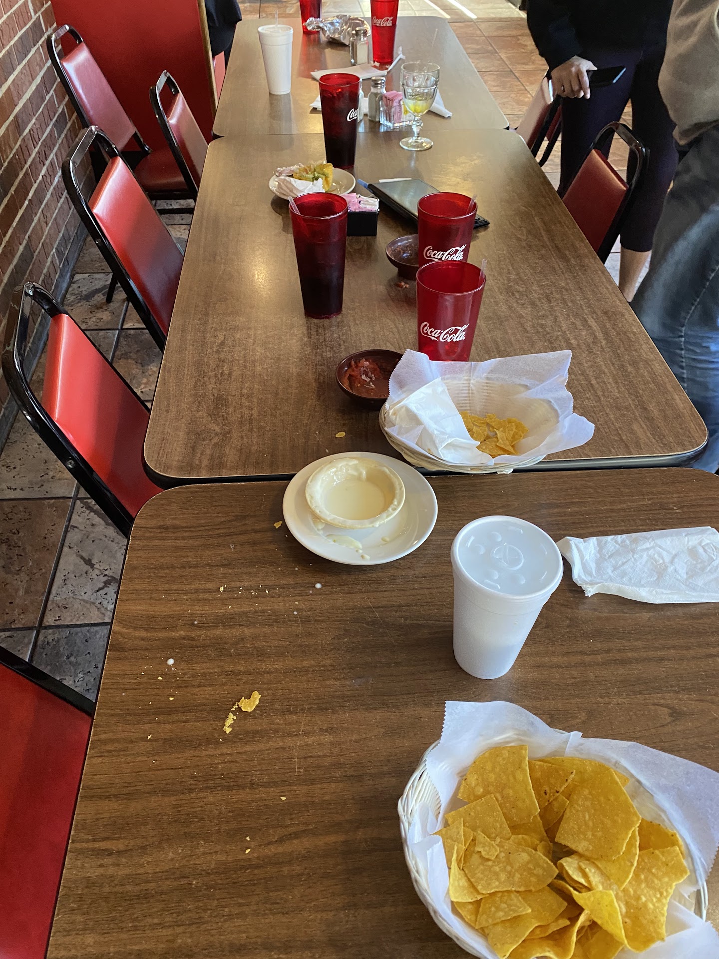 The next poor display of service was the following time we came in, which was a few weeks after. Me and my two other friends walked in, and were seated at a table within a few minutes. However, after 20 minutes of no further service, and watching the employees sit on their asses we decided to leave and went on ahead to La Hacienda in Peachtree city where we go superb service.