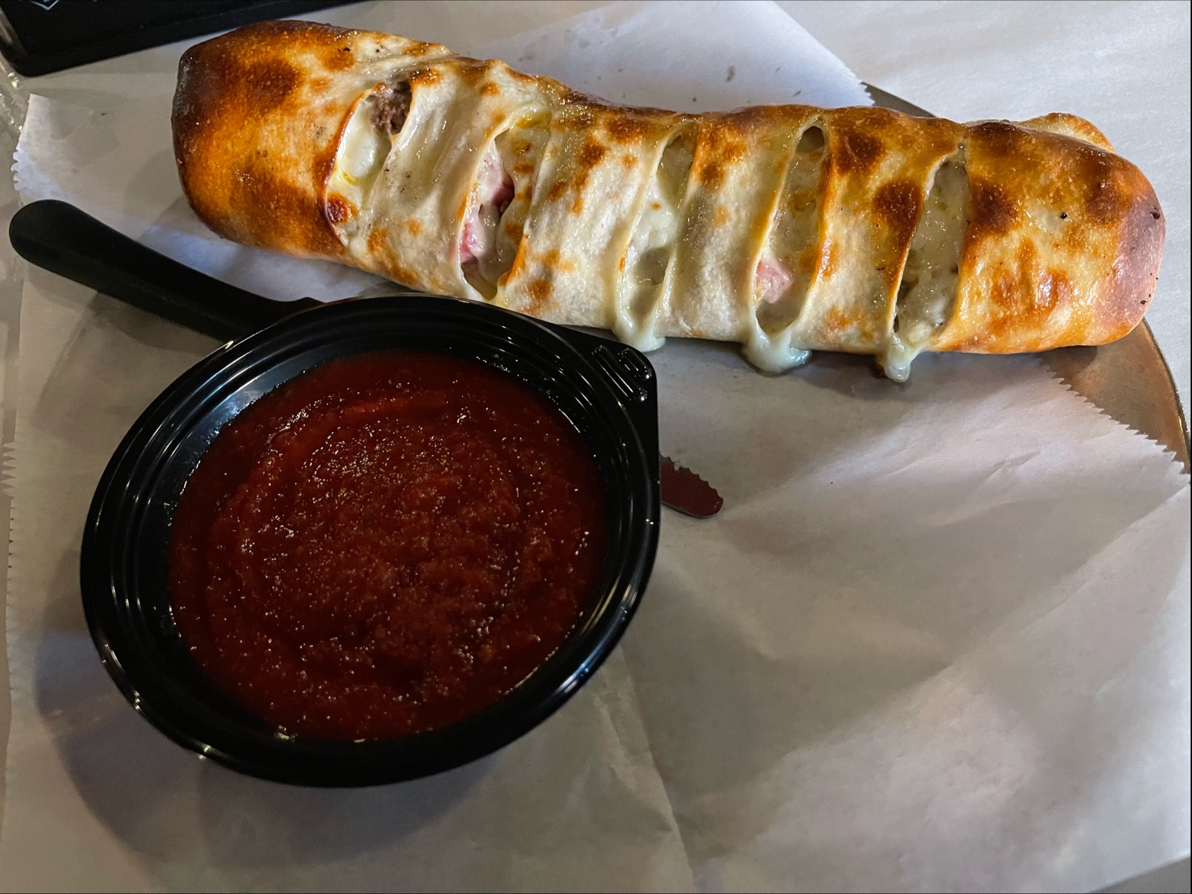 Read moreThis was our first time trying the place. I will say that the service was wonderful. The servers were very attentive and friendly. Unfortunately the pizza was not great. We ordered a supreme and a pepperoni pizza. The supreme was seriously lacking on toppings and very basic looking. The pizza sauce was so thin and runny. When we went to place the slice on the plate ALL OF THE CHEESE AND TOPPINGS slid right off the pizza. We were left with dry crust. We showed it to the server and thankfully they agreed and asked the kitchen to cook a fresh one. The replacement was better but still not great and lacking flavor. The garlic knots were actually very tasty but unfortunately the thin water like sauce you dip it in ruined it for us. Based on the experience we probably wouldn’t want to give it...