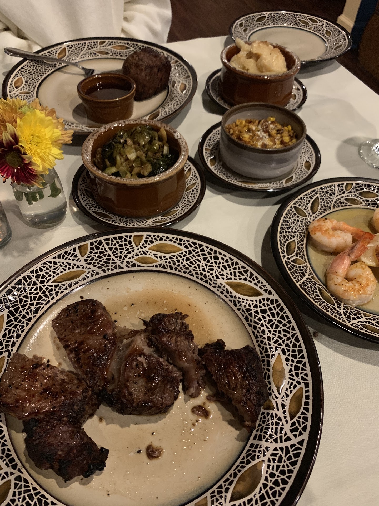We went last week for my wifeâs birthday. The restaurant had been highly recommended so we thought we would try it. There were many things I can compliment the restaurant on. The overall atmosphere is very good. The wait staff were very attentive and on top of everything. Everything we had for our dinner selections was excellent except the steaks. We had the wedge salad which was probably the best we had ever had. We had 3 sides that we shared. The Brussel sprouts and the scalloped potatoes were both incredible! The charred corn was just ok. Unfortunately the steaks were a big miss for both of us. I had the ribeye and my wife had the filet. I ordered mine medium and it was cooked almost well done. So I had to send it back. My wifeâs steak was a bit over done as well but she kept hers because she said it had a good flavor and it was tender. My second steak took a very long time to come back and was better but still over done. They were nice enough to take my steak off the bill but the total was still over $100. Everything at the restaurant is a la Carte so my steak for just the piece of meat was $50. We have been to some of the best steakhouses in the country whose prices were very close to this one and unfortunately that night we didnât have the best experience. I never want to bash any restaurant because even the greatest restaurant in the world is not going to be perfect all the time but I wish that the steaks had just shined a little more and I would have given them a much higher review. But I would probably return again just for the salad. It was that good! Thank you for the good service and the sides. Hopefully we can try again...
