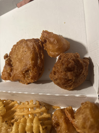 DO NOT EAT HERE!!!!!!! 1. I went through the drive through and asked how much the 2 piece fish and fries basket was and was told it was $7.49. I proceeded to order 2 baskets. When I made it around to the payment window, she informed me that the price went up and that my total was now about $20. So I guess from the time I drove around until the time I made it to the window, which was about 30 seconds…. The price went up! OK no worries I switched my order a little because I could get more for that price. They then told me to pull around and park in the front of the restaurant and they would bring my food out FRESH!!! We waited for 20 minutes!!! Received the food went home only to find out that 1. My green beans were not in the bag 2. this food is nowhere Near fresh! It’s not even hot to the touch!!! I can’t even squeeze my hush puppies because they are so hard and old!!!!!!! I called and spoke with Bianca, the manager on duty, and she told me there is nothing she can do about the quality of my food!!!! She didn’t offer to remake it. She didn’t ask my name. She didn’t ask me if I wanted a refund!!!! This place has went downhill and there is no coming back from it. They should have remained closed! They need to train their employees in the area of customer service and empathy, especially when they are at fault!!! Per BIANCA the reason is because they have a new kid!!!! I’m DISGUSTED!!!!! Y’all look at this picture!!!! And that small ball is supposed to be a shrimp!!!! Look at how overcooked...