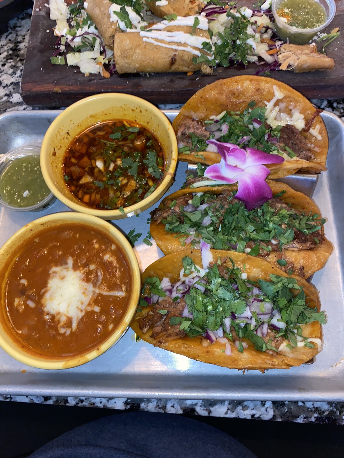 Read moreI love leaving positive reviews, especially when excellence demands it… and everything about our visit demanded it. We ordered cheese dip and table side guac as starters. The cheese dip with the deliciously buttery queso that pairs perfectly with everything. Table side guacamole was not only amazing, but achieved the balance between a hint of spice, enough lime and salt that it hit the fresh notes, and chunky without being overwhelming for the chips. I could live on this guacamole and be happy. For dinner, every single plate we saw delivered around us was appetizing and filled with flavor. When our turn to order came, we ordered birria tacos and Texas style molcajete tacos. Birria tacos landed on top as both of our personal favorites. The amount of brisket, cilantro, the fresh green salsa, and the corn tortillas was deliciously seasoned to perfection. For the molcajete tacos, Texas style included shrimp, chicken, steak, and chorizo all served with an ample topping of melted cheese. It was utterly decadent, perfectly seasoned as well, served with a side plate similar to fajitas. I told my friend as we were debating when we’d eat again, that this experience reminded me again of just how fueling your body can be such a rich and flavorful experience. Heck, even the salsa on the tables needed no augmentation. It was by far and away one of my favorite dinners I’ve had in a looooooong time. And as someone who claims Mexican food to be my favorite- that’s a huge praise indeed. Oh and despite being newly opened and wildly busy- our server was attentive, kind, and checked in repeatedly to ensure we not only enjoyed our food but had enough chips, salsa,...
