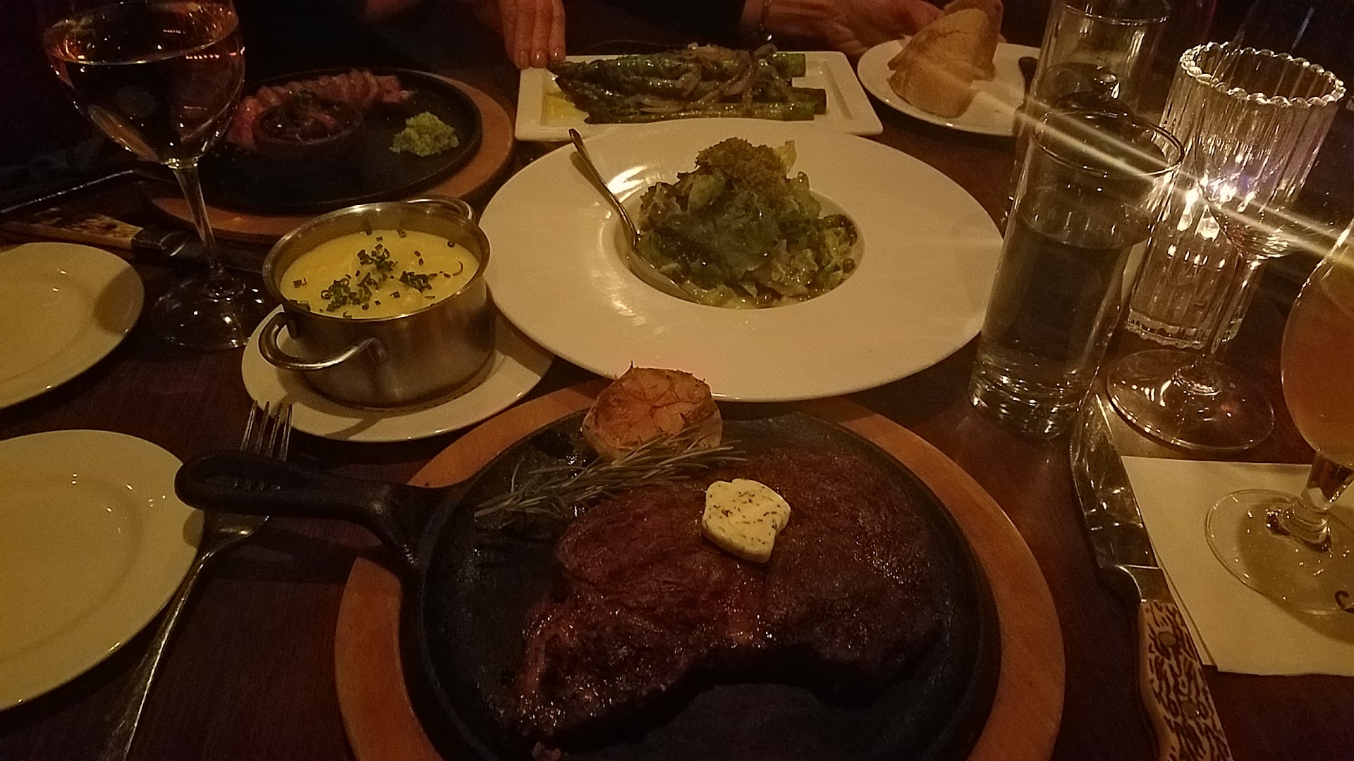 Read moreFirst time here I had a cosmo it was very good, then there was a table that filled up in the room with about 10 men, it was so loud you could not talk to each other, now if they have a room which I was told they do they should have put a party in it so he wants to disturb the rest of us while we were trying to have a conversation. We ordered the meatball appetizer that was four of us there was only three meatballs, so we had to cut meatballs in half and all share and then the last meatball we had to cut in four pieces If you're four people you should have for meatballs! I really want to chicken but I was told by the waitress that it was full of mushrooms and I said well I don't really like mushrooms cuz they put anything else on it and she said no ( I also have a garlic allergy which I told the first waitress with the short hair there must be garlic in my food because my stomach started bothering me) I ended up ordering the Thursday special which was in my opinion really not edible it was very very tough it was the chimichurri skirt steak I ended up trying it get a couple bites and taking the rest home and I ate the fries, luckily my husband and I had shared a salad which was very good or we would have stop on the way home to get something to eat for me. I don't know whether I come back or not consider the fact that they couldn't even do anything for chicken when it's made to order and substitute another vegetable if somebody doesn't like mushrooms they should accommodate, And I don't eat fish I kind of stay away...