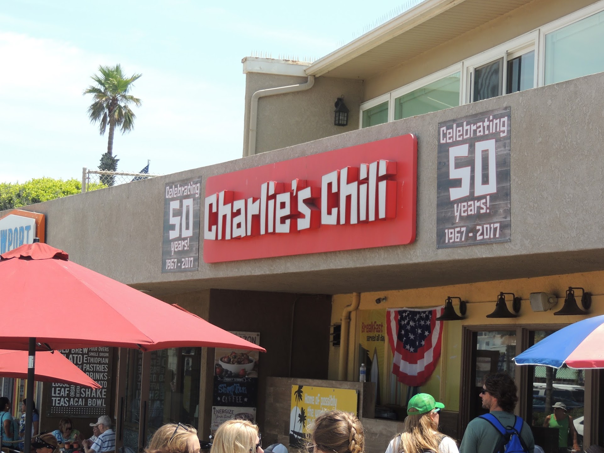 This visit was my first time to Charlie's Chili; a very popular beachfront restaurant that was packed the whole time I was there with people waiting to get a table! the restaurant is casual casual, no suits here at all. Experiencing Charlie's is memorable; I really like a lot of things about this restaurant. It is for sure in a great location; the large patio seating area is extended to the street and the Newport Beach Boardwalk. The views of Newport Pier and the plaza are very nice; you can take it all in from here.The seating indoors (open door and windows) is nice; eclectic decor and the talking diners add to the atmosphere.