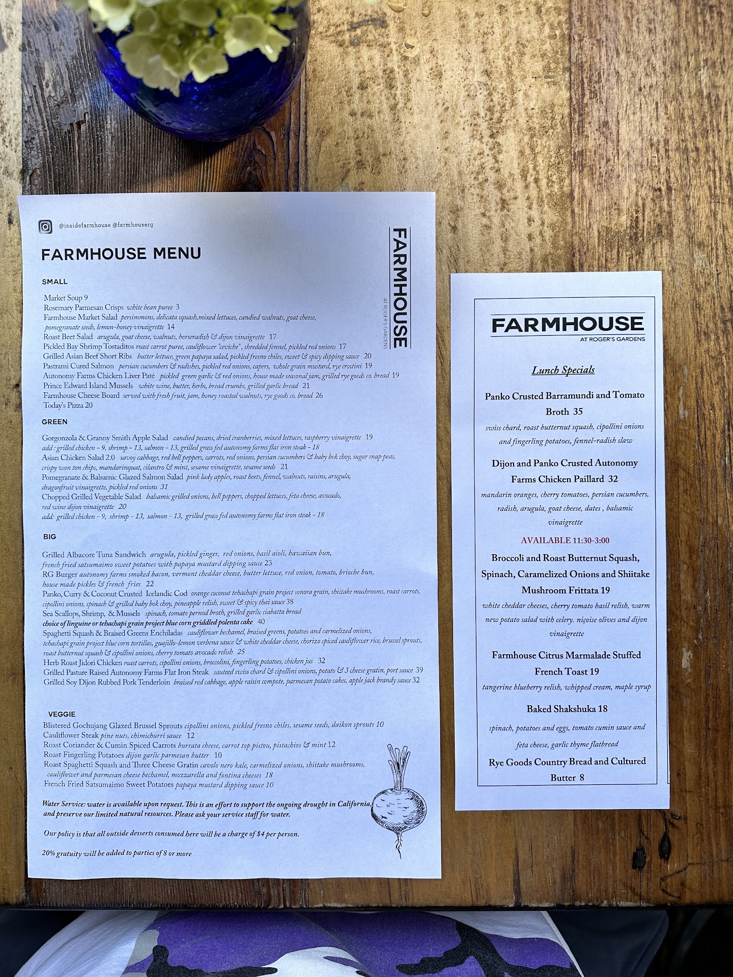 Read moreThe Farmhouse at Rogers Gardens is simply a beautiful space. Combining some indoor seating with predominantly outdoor seating, we opted to sit outdoors, which had us feeling like we were dining in a lush and sprawling garden.