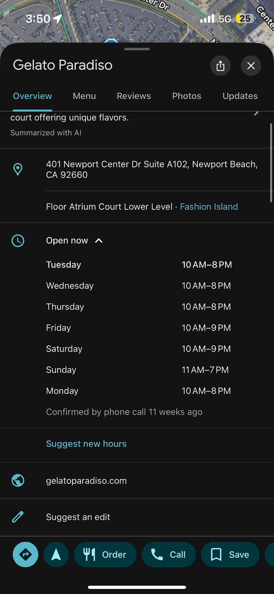 This is my first time having Gelato and let me tell you it's much better than ice cream. It's so creamy. Gelato Paradiso is in the food court at Fashion Island between Five Guys and Wahoo's.