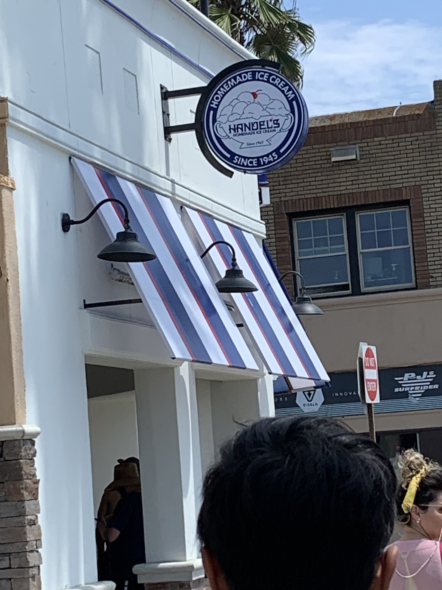 This specific location is great also because itâs right across from the beach. There were several groups of beach goers lined up ahead of us to order but things moved along very efficiently. I highly recommend Handelâs ice cream and this location is great if you want to sit at the beach eating...
