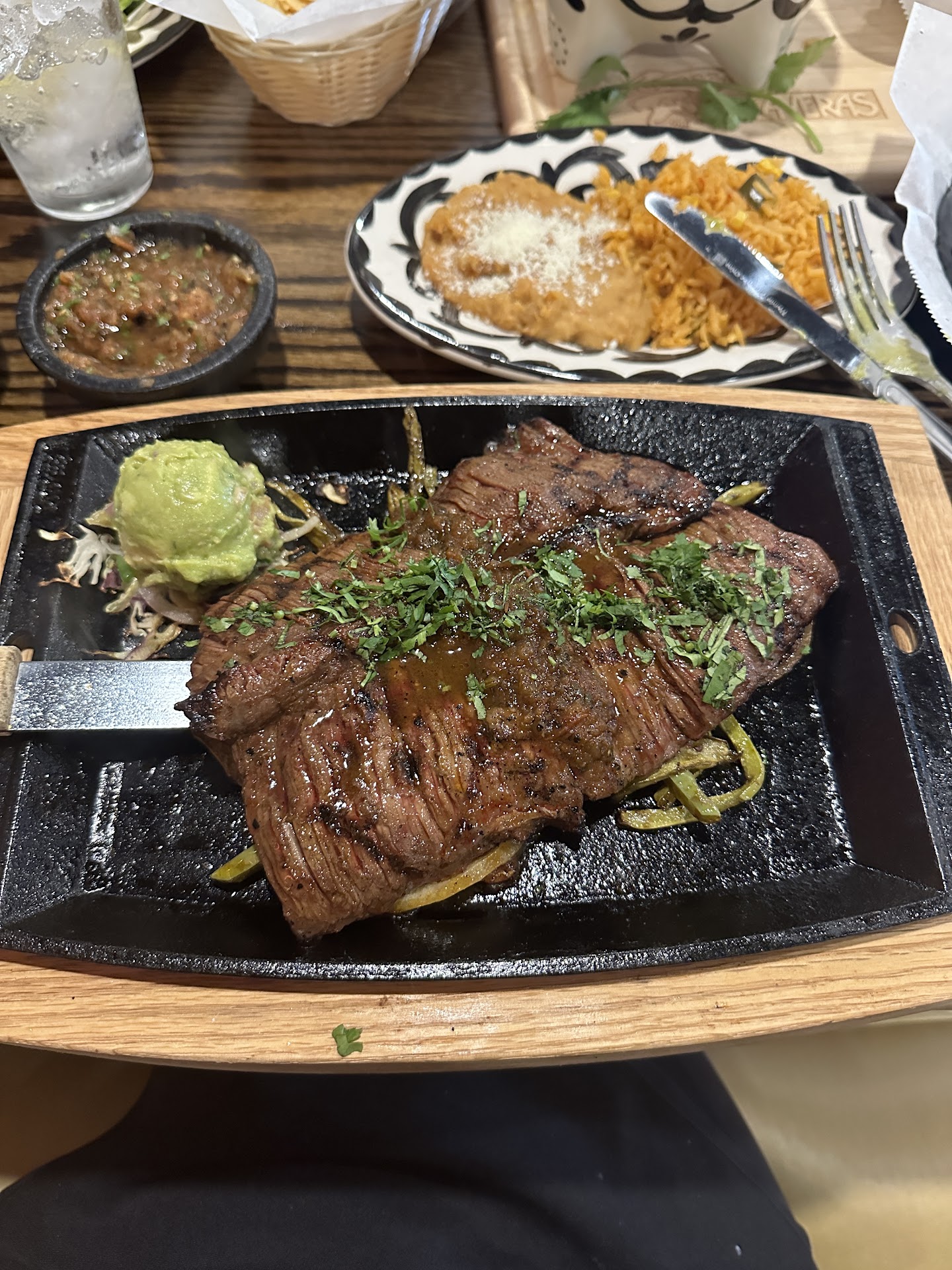 We were seated and waited another 8-10 minutes for our waiter to stop by and ask if we wanted water/drinks. I ordered a margarita which was not listed as having a special rim, but when it arrived there was tajin in and around the drink. I had to ask that they remake it as I don’t like spiced beverages, which they were happy to do, but I thought it odd that it wasn’t listed on the menu. Not to mention the drink took another 10 minutes to arrive so ordering a new one I knew would take forever.