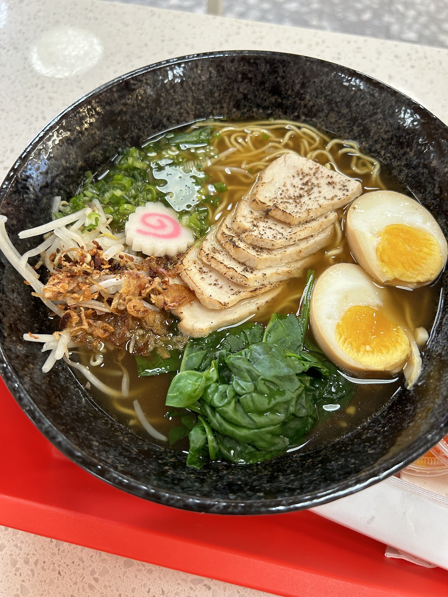 To start with the Creamy ramen it was not creamy..... and the broth tasted bland and like pork water. No depth of flavor and barely any salt. I'm sure dog water probably had more flavor than this. Noodles trash. Ramen noods are supposed to be nice and curly with some chewiness to allow for the broth and aromatic oils to be scooped up as you eat. Bruh these were like spaghetti noodles ahhh heck no!!!!! Clear ramen was worse. This ramen was on another level of bland.