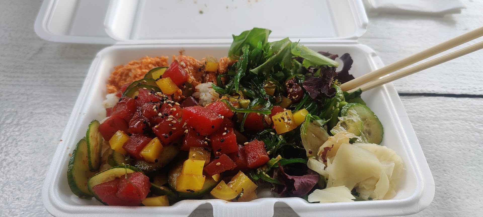 Read moreWARNING FOOD POISONING WARNING NOT A VETERAN FRIENDLY ESTABLISHMENT Food should be no star Service no star Atmosphere 1 star THE ONLY RUDE PERSON WAS THE OWNER AND THE WIFE. LOOK AT THE VIDEO. YOU WILL SEE ITS HER THE OWNER NOT THE CUSTOMERS PAYING ALMOST A HUNDRED DOLLARS FOR RAMEN AND A POKE BOWL. YES. THAT OVER PRICED . AND LOCATED WHERE YOU ARE YOUR FOOD SHOULD BE TOP NUMBER ONE 100% ALL THE TIME