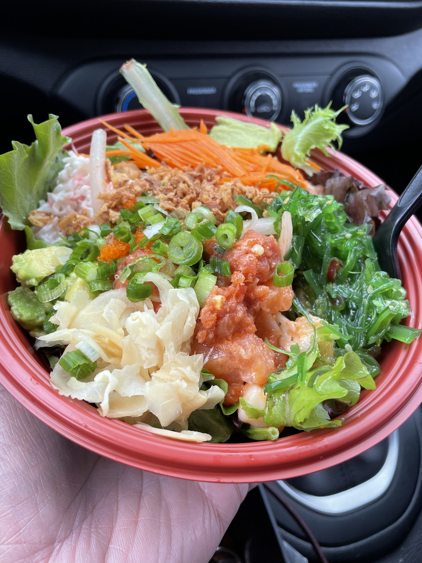 Read moreWe went to Poke OC for lunch while in the delivering training. This is a great place to know about inside more of a business park than a shopping or dining area. I got the regular bowl which comes with 3 different proteins. I chose spicy tuna, shrimp, and salmon. There were lots of additional add-ons for your bowl including crab meat and seaweed salad.