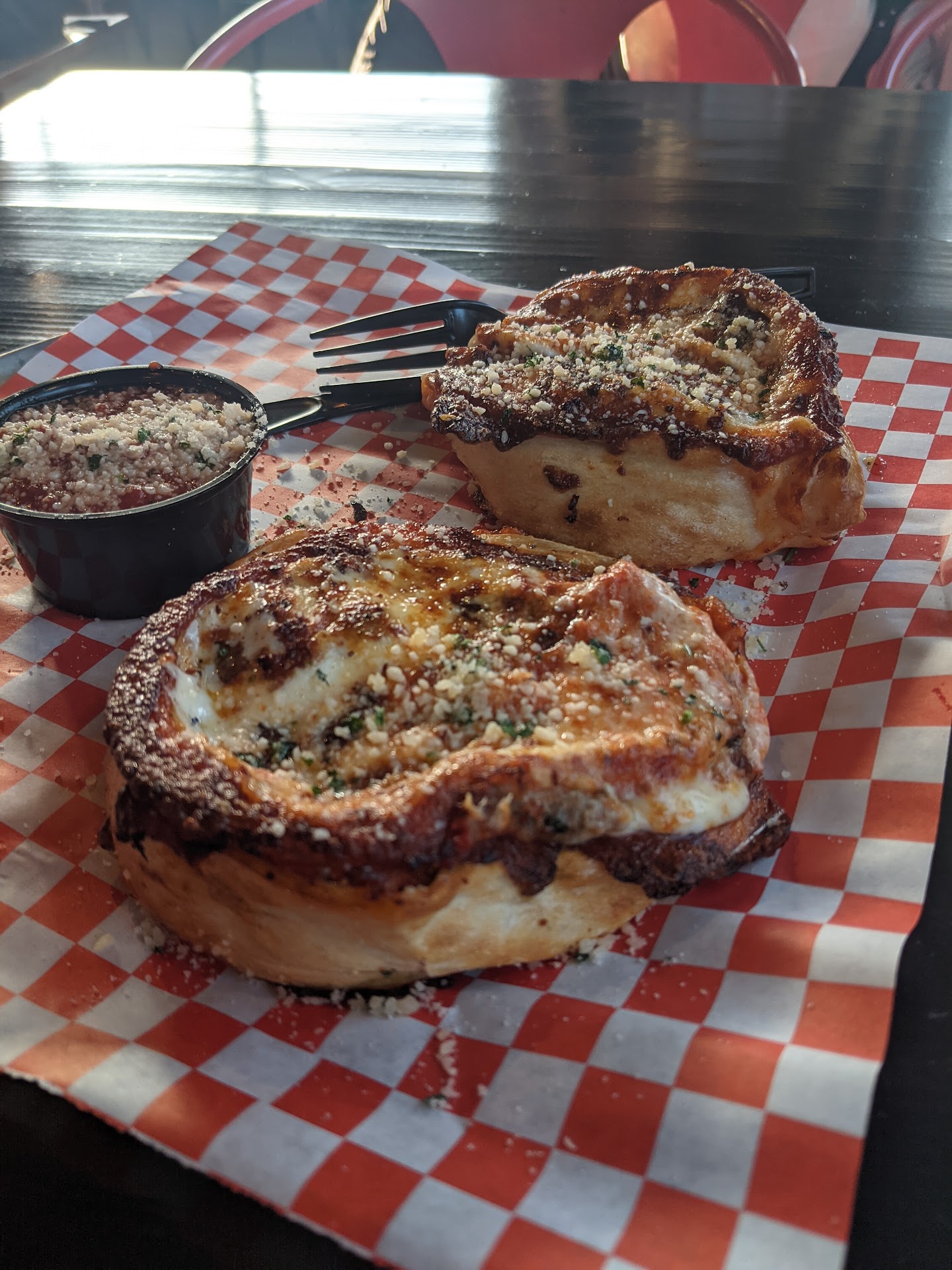 Update 3: I ordered the same thing as I did last time. Meatball ricotta pinwheels extra well done. Seemed simple enough. The place was steady but not slammed. My order was ready in a reasonable amount of time however, they weren't well done. They were barely above room temperature. The staff member that took the order was at least friendly this time. It's so hard to nail down consistency in the restaurant industry. Next time, I'll order them to go, take them home and get it right myself. It shouldn't...