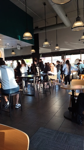 If I could, I would give this place a 4.5, but as I have to round towards a whole number, I feel the quality of the service of the staff calls me to round up to a five as opposed to down to a four. I do recommend it strongly for grabbing a quick coffee to go or for a short sit-down to catch up with a friend. That's said, it's not the best Starbucks for prolonged sitting if you plan on studying or doing prolonged...