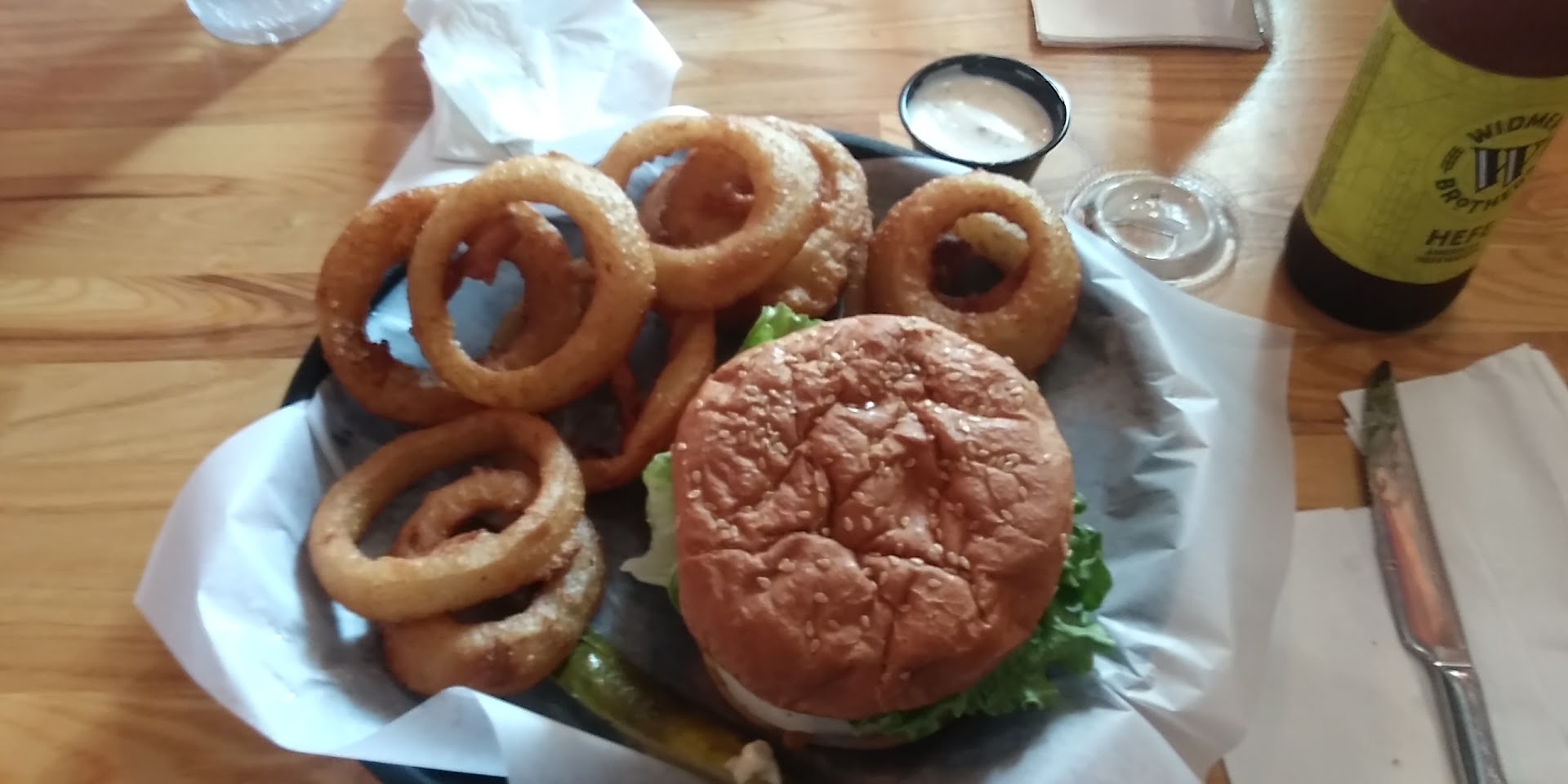 Read moreTook my realtor and her mother out to a late lunch on Saturday, August 24th. Despite it being late in the afternoon. They were busy! Despite the crowd, service was quick from the friendly waitress... The food was great and at very resonable prices. I had the barge burger ($9) with bacon added ($2) with a very generous serving (IE A LOT!!) of onion rings for my side. I HIGHLY recommend!! One of my dining companions, had the chicken wrap. While the waitress mentioned they were known for their hamburgers. My lunch companion, commented the wrap was stuffed full and was delicious!!