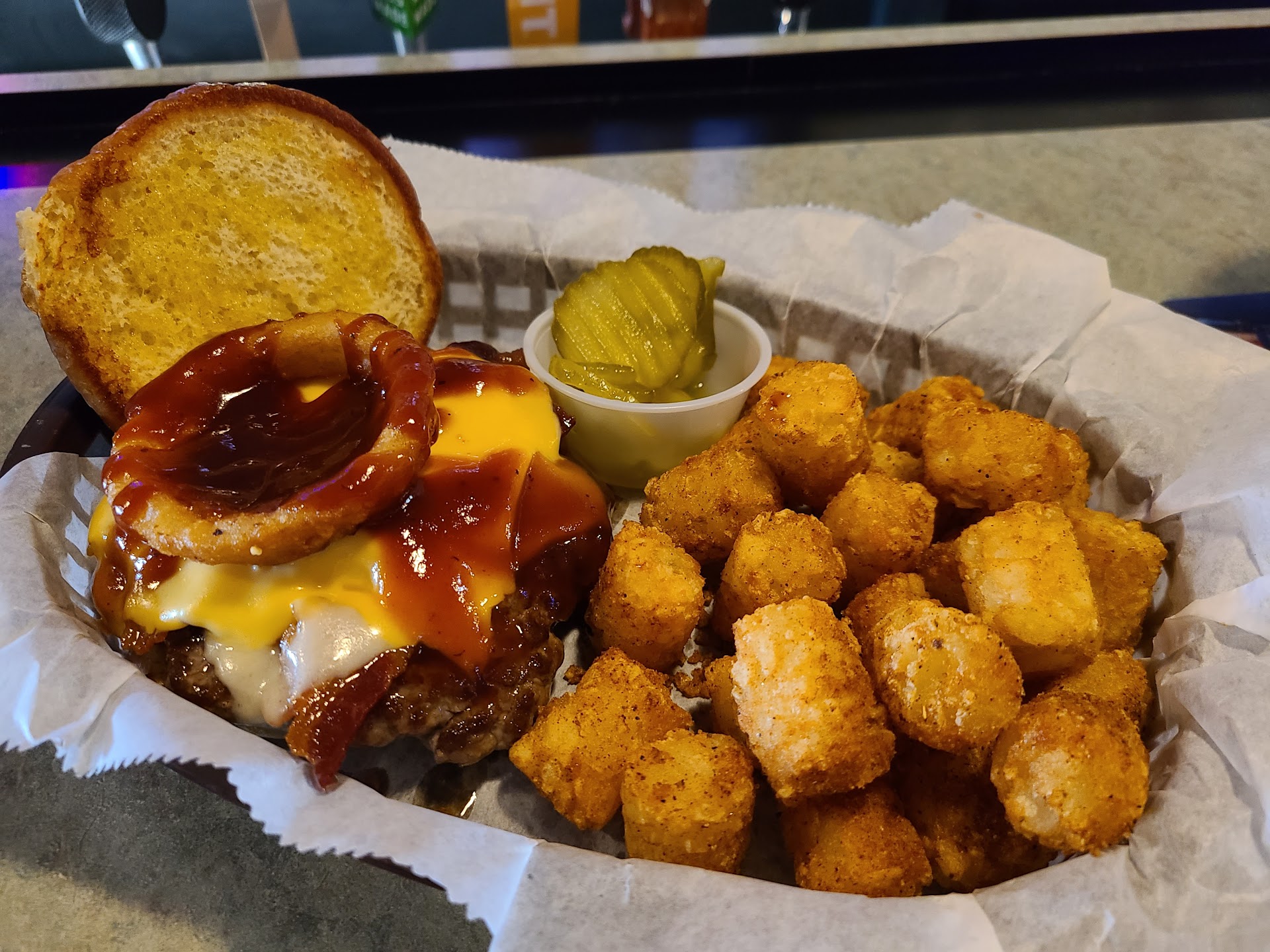 Ā Ā Ā Read moreI didnāt expect much from this tiny bar. We just came for a drink and ended up getting food, and boy was I surprised. That was one of the best fish sandwiches I have ever had! It was perfectly crispy on the outside but tender and flaky on the inside. The breading was golden brown and the topping paired so well. I always need spice with my meal though so I asked for hot sauce, they brought me Melindaās habanero sauce. So good! My tater tots were also cooked exactly the way I like too. My date had the fried shrimp basket and he loved it too. If I ever find myself in this town again, Cloverleaf is definitely...
