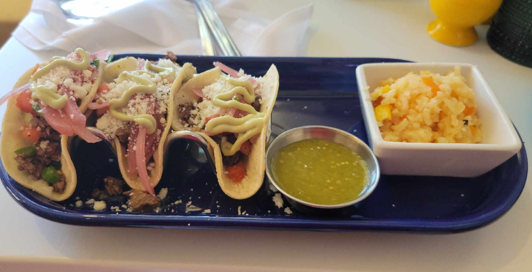 We stopped by La Costa restaurant on Thames Street in Newport yesterday, 31 Aug 2023 for lunch. My adult son and I are big foodies and Newport locals. La Costa restaurant draws attention with its colorful decor. Its bright and cheery as well. The restaurant has several seating areas indoors and outdoors. We started by ordering a couple of drinks and the coconut shrimp appetizer. The horchata drink was good, but the sake drink tasted watered down. Not appealing at all. The coconut shrimp, $15 was a true disappointment. The shrimp were not jumbo size. The outside breading on the shrimp seemed too dark and the plate came with only 5 pieces on a bed of lettuce. The one thing we liked was the salsa it came with; very delicious. The shrimp appetizer is clearly overpriced. We ordered pork and chicken tacos, $14 & $16. The waitress mistakenly brought beef tacos instead of pork. We left it because we were hungry. We were astounded that there were only 3 small tacos on each place with a side of salsa verde and literally two tablespoons of rice in a tiny square bowl. The portions were terrible; not enough food. Unless this restaurant reconsiders their portion sizes and pricing, they will surely only have one-time customers stop by. Guaranteed, La Costa will not have return customers unless they add more food on the plates or lower the menu prices. We ended up paying what a dinner would cost for a lunch with hardly any food!!! We left dissatisfied and very hungry. We will never go back. True disappointment. Do not...