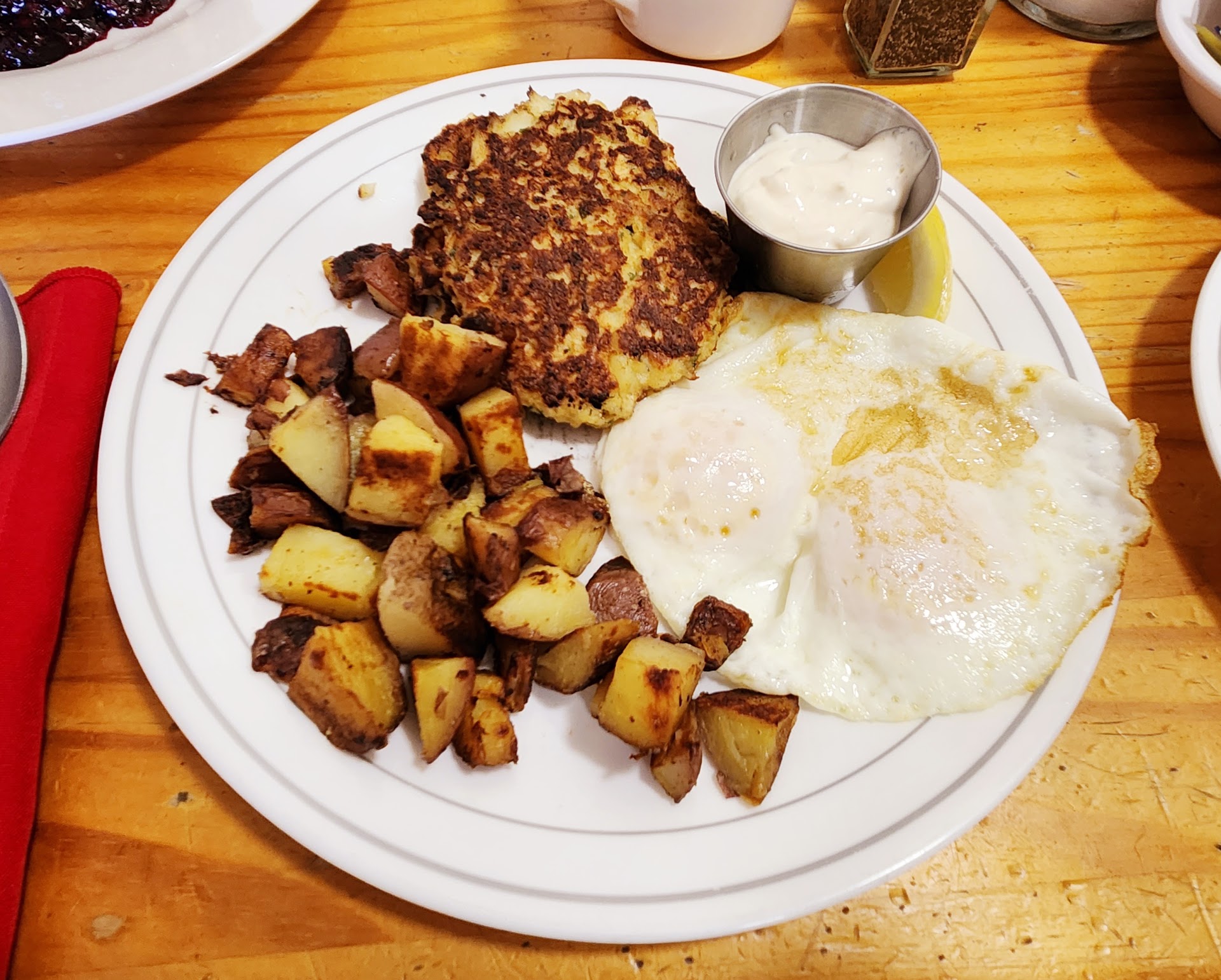 Unfortunately because of my condition I had to choose something pretty simple & quick, I was super bummed that I didnāt get to try what I wanted š¢ So eggs, bacon & potatoes for us. When I asked if āmuffinā meant English Muffin I was told āNope a lemon blueberry muffinā ā¦. Oh she had me right there , but then Mom turns around with a big smile & tells her us that they were freshly baked homemade muffinsā¼ļøā¼ļøā¼ļø Uhm Yes Pleaseā¼ļøā¼ļøšš¼š