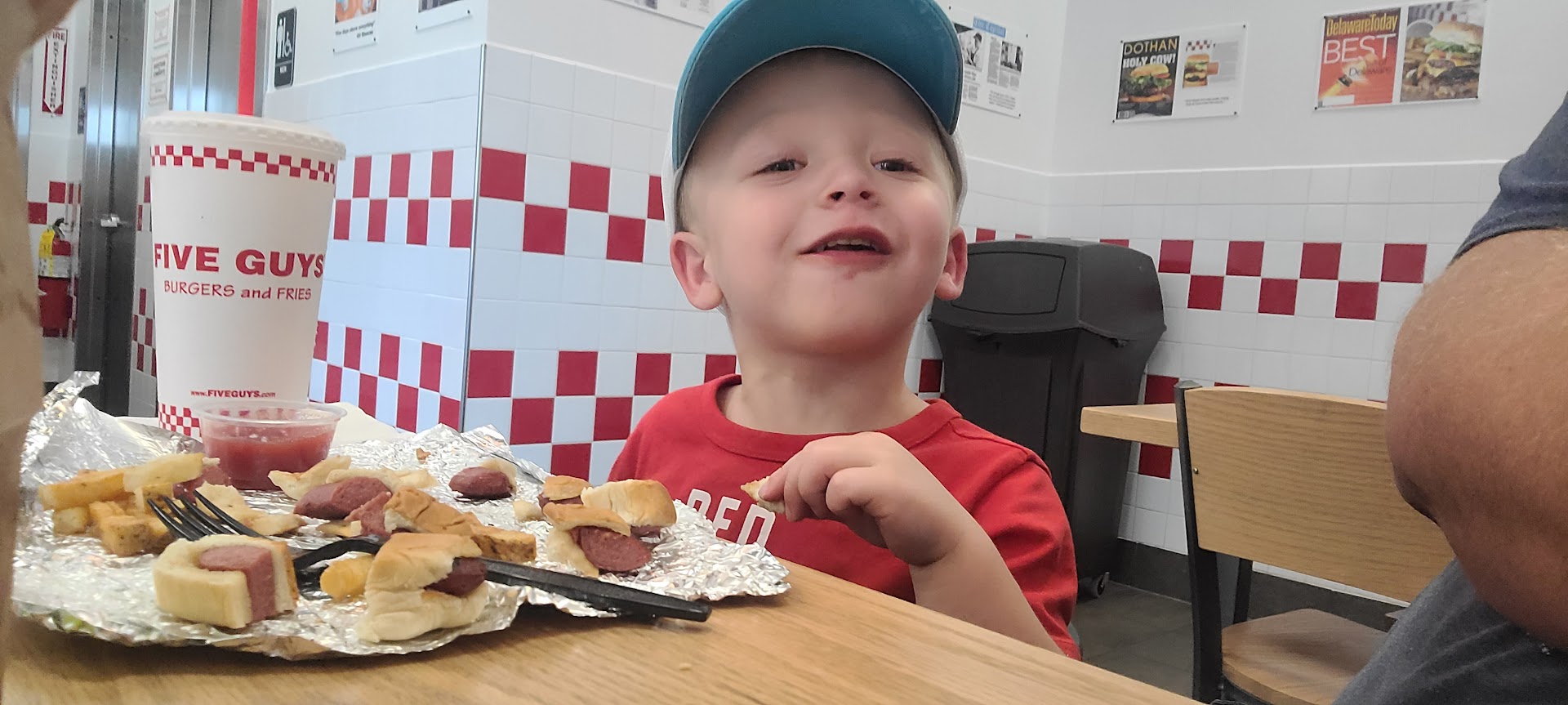 I placed a carryout order by phone at 5 p.m., which was a really slow time, and my girlfriend picked it up. My girlfriend paid the cashier, and she said the cashier looked at the tip and rolled her eyes, and she didn't tell anyone that this order was ready for pickup so they could drop our fries. My girlfriend sat there for a half hour before everyone else in the place had been served, and our order was sitting on the shelf the whole time. Rather than remake it, they gave us cold burgers that were sitting on the shelf. When you're spending almost 40$ for burgers and fries, you don't expect to get cold meat and wet soggy buns. They didn't even put any of our requested condiments and toppings on there. I called and complained, and a manager named Kim told me they would correct the issue. A week or so later and I called to place the order and told the manager on duty who was a male to let them know what was going on. He said he didn't know how to do that and that I'd have to call back another time because he wasn't able to do anything about it. I went the next time in person. The only reason I give this location 5 stars for service is because the manager on duty was really nice about it and remade my order since I had my receipt. Overall, the two stars rating is because of the inconvenience the managers and employees caused to actually get what I paid for. I don't want to be treated like someone trespassing in the capital from District 12 when I'm going to spend my money somewhere. I'm not looking for someone working at 5Guys to "create an experience" for me, but I don't like the way we were treated as customers by their staff, with the exception of the manager that addressed the issue finally. I love 5Guys, but I won't go back to...