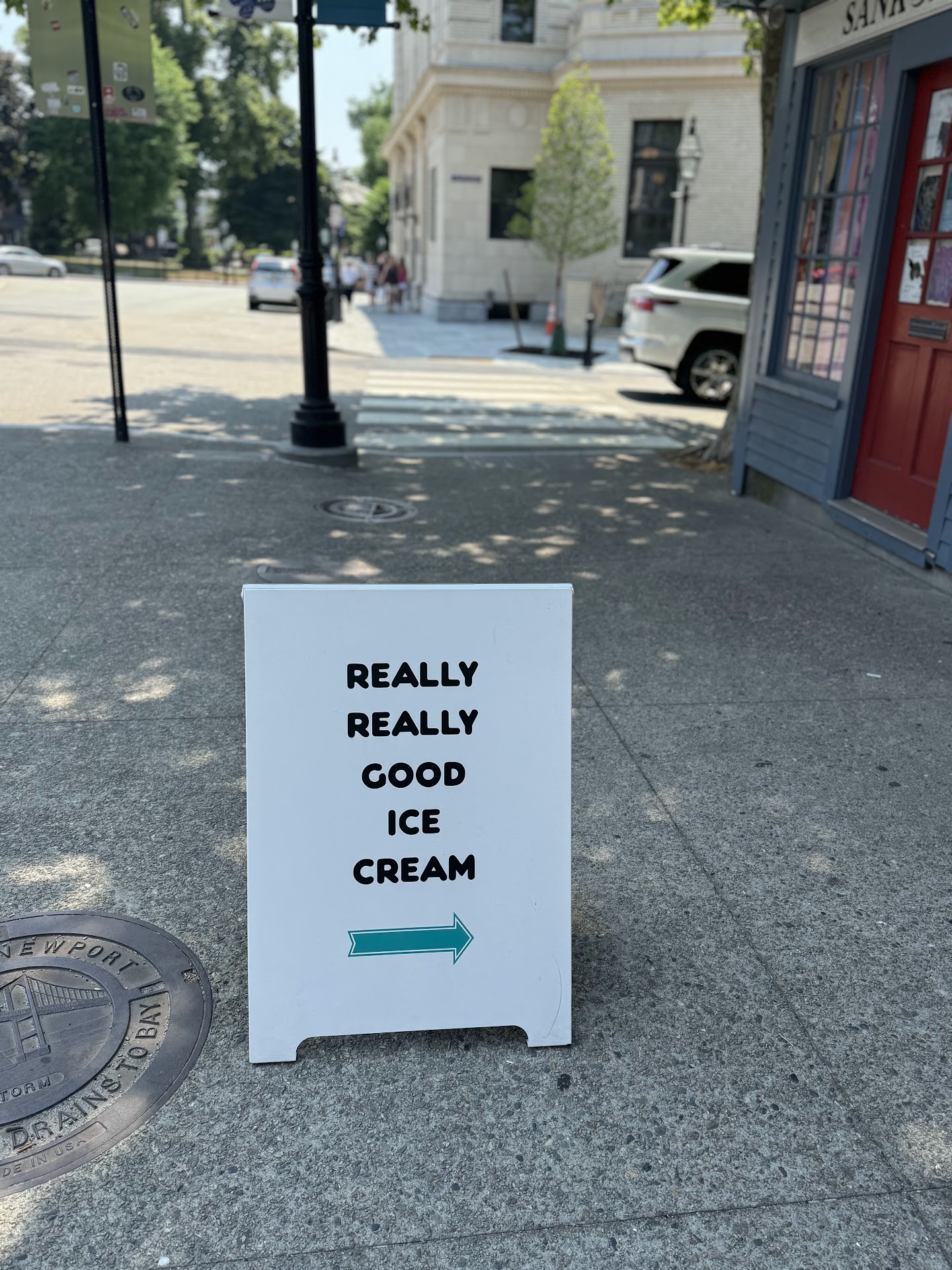 My husband and I got ice cream at Get the Scoop on Saturday evening after going to the movies at the Jane Pickett. We don’t live in Newport and didn’t know the scene, but saw an independent shop with 5 star reviews and thought we should go.