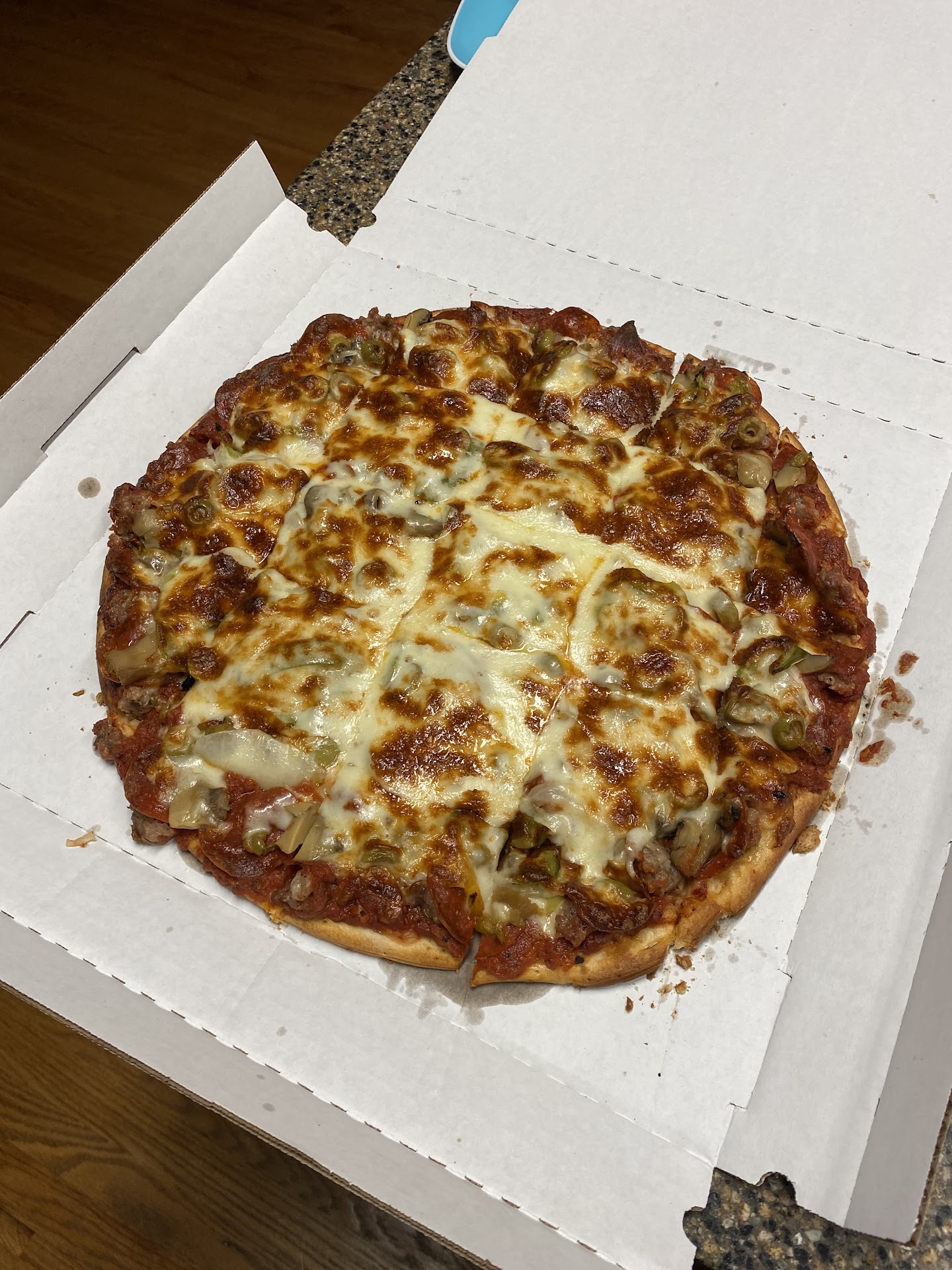 Read moreI was stunned to read Richard Aguirre's review because we had almost the same problem on December 14th. The pizza crust on the bottom was actually raw under the white layer (not even browned). Cold and raw. The food had been getting worse, especially with delivery. They must rush it out whether it is fully cooked or not if a delivery person is leaving with an order. I spoke to the guy who answered the phone and he seemed angry that I would state such a fact. We know when we want something delivered that it will take quite awhile and we were happy with that but now when it arrives under-cooked. Maybe there are all new people there now but the food is terrible. We waited until two weeks ago (February) to pick up another pizza and it wasn't up to their old...