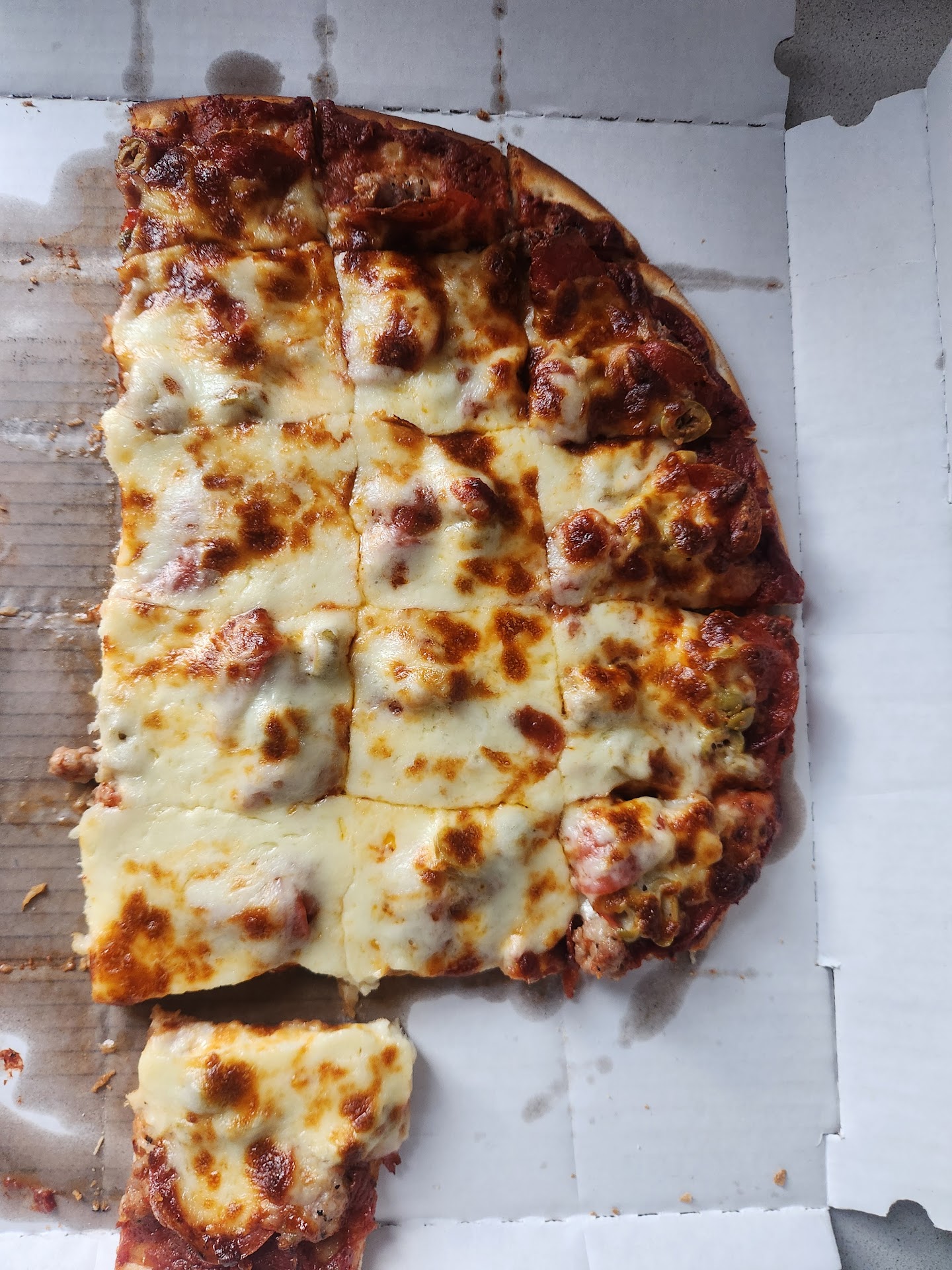 Read moreWe ordered online on our way to a family members house. They said 30 minutes, and we got there in 30 minutes. Our pizza was hot and ready! 🔥 We got a large Pep pizza with cheese bread for around 25 to 30 bucks. Prices very reasonable. The building is small. With no seating, and a few workers working their butts off behind the counter. Nice and friendly! Got our oder right away and paid with a credit card and tipped with cash. The only reason I gave 3 stars for atmosphere is because it is nothing special, but it doesn't need to be. The pizza and cheese bread speak for themselves. I would highly recommend! The pizza had alot of cheese, and was thinking crust...