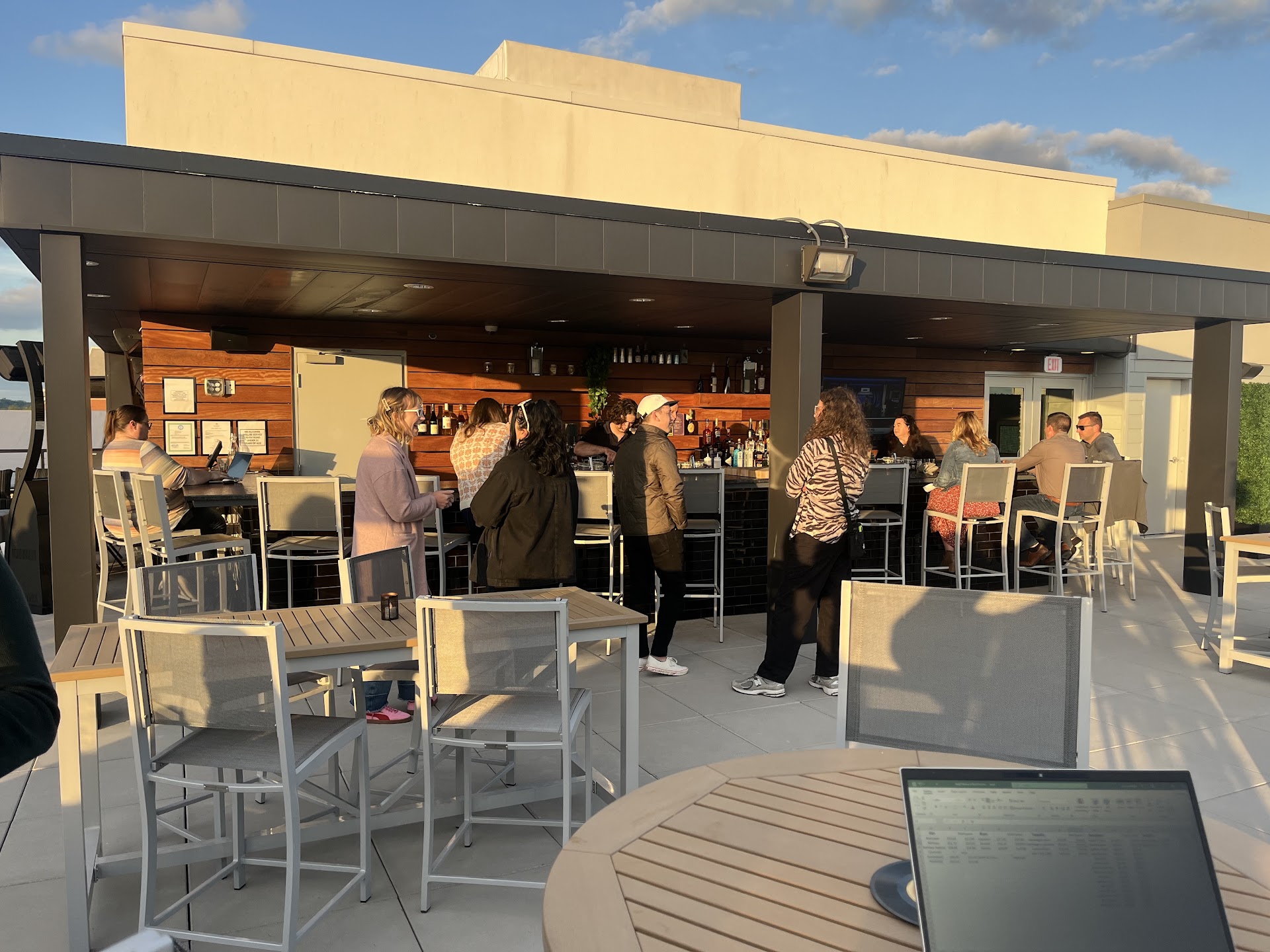 Perched high above the brand new Homewood Suites in Newport, The new HighNote bar is a gem that blends stunning views with a chilled-out, upscale vibe. From the moment you step off the elevator, you're greeted by panoramic views of the skyline, a soft breeze, and the subtle hum of curated beats.