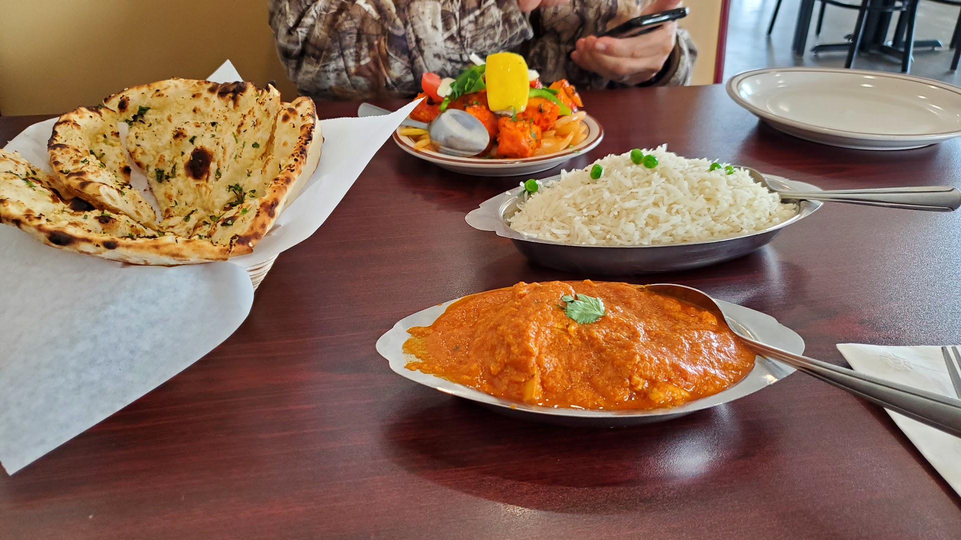 Firstly the food was absolutely amazing. My Wife and I typically have Indian about once every week or every other week. This is the best tasting Indian food I've had in Cincinnati. The Samosas were perfectly seasoned. The chutneys were the best I've had. The Hot and Spicy Naan put any Garlic Naan I've had to shame. The Aloo Matar was again seasoned perfectly. I've never realized before that I believe most Indian places over season their Aloo Matar, this was not seasoned as strongly as I've had but enough to still taste the seasoning flavor and it was just amazing, it gave it a lighter fresher taste. The potatoes were cooked perfectly, they still held their shape but fell apart when you bit into them. I'm being very critical here the only thing I will say was the Basmati rice was a kind of bland, I'm used to it being more fragrant and seasoned a little bit more, but honestly the rest of the food was so good this wasn't an issue at all.