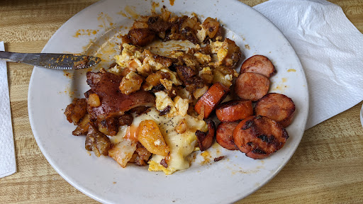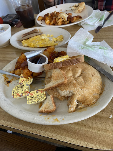 Extremely dirty. Counter sitting has knee slime all along the base of the counter from people's knees hitting the wall. Floors along the kitchen have a thick crust of food. The little alcove that houses the bathroom has a broom that is thick with grease as well as the floor. The waitress seems nice but not attentive to customers. We had to ask for more coffee, extra napkins, ice for the water she gave me. Now on to the food. My potatoes had tons of burnt bits in them. Not sure what it was. I asked for over medium eggs they looked weird. Not sure what the orange/ rust color stuff was that was all over them. I asked for well done toast. What I received was not well it was a weird kind of cook yet it was soggy. With also red stuff on it. Nothing i ordered was red. Although my husband did order chourico which looked like linguicia. It didn't taste like chourico either but the waitress assured us it was and that the brand was Michaels. He asked for scrambled hard and he received eggs that hadn't been scrambled because the egg whites were visible. I've tried this spot before and it wasn't any better than it just seems worse. Unfortunate to let a business run itself into the ground. Side note the older gentleman cooking...