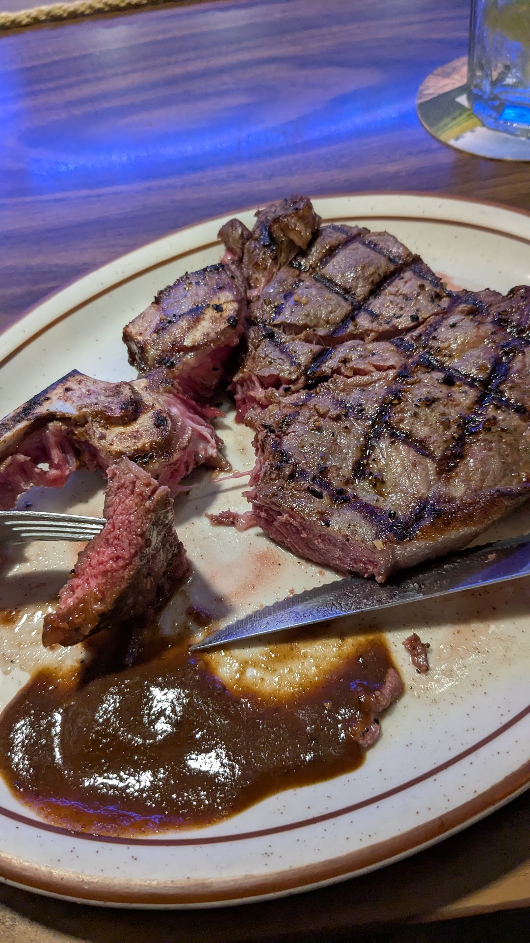 Then we heard the bells ring in the back of the house and Charlie said, "your steaks are ready! I'll be right back!" He topped off our drinks constantly and made sure we wanted for nothing! Despite the fact he was super busy and short staffed.