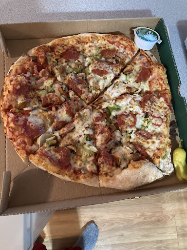 Ā Ā Ā Read morePeople working seemed to not wanna work except two drivers and the manager. The man that took my order took it but seemed to hate I even placed it I ordered a specialty pizza large and cheese bread. For the price I paid I expect to get what I pay for if I wanted ok pizza Iād gotten a frozen one from the store. My pizza was very thin crust light on the toppings just tasted old not satisfied with my vacation dinner. I hope this location gets it together. My cheese bread was late going into oven as well 15 min turned into 30 min to pick up my order. For my trouble the manager at least gave me extra sauces....