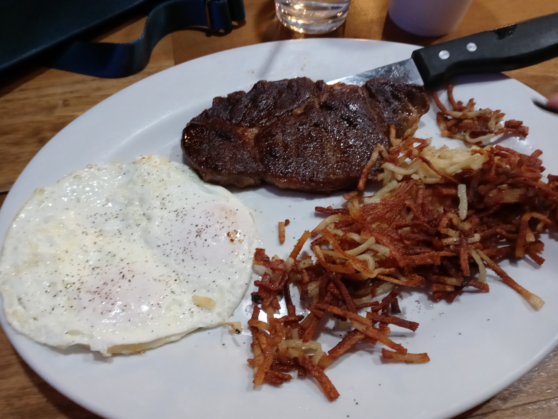 Read moreWe stopped in here for the first time today because Gourmet is still closed due to COVID and Lana's was packed. I've walked by many times but never been inside. It's so nice! Nice wood floors and tables, gorgeous brick walls. Plus the place is huge. You could hold an event here! So large, you wouldn't know it from outside. We were seated and received menus and drinks quickly. I ordered steak and eggs with hash browns and an English muffin The hash browns were so crispy! No undergone potato here. The steak was a ribeye that I ordered "medium." It definitely came out well done so be careful of that. The seasoning was really good on it. It was tender but not juicy due to them serving it well done. My dog enjoyed his 1/2 of it. The eggs were fine, they're just eggs đ The English muffin was fluffy and they butter it for you, I prefer to butter my own but it was still good. I also thought the water tasted nice. Not tinny like tap water can be. I also ordered a hot chocolate which was GIANT for the price and I was very happy. Overall, very good! It was a good breakfast and I'm...