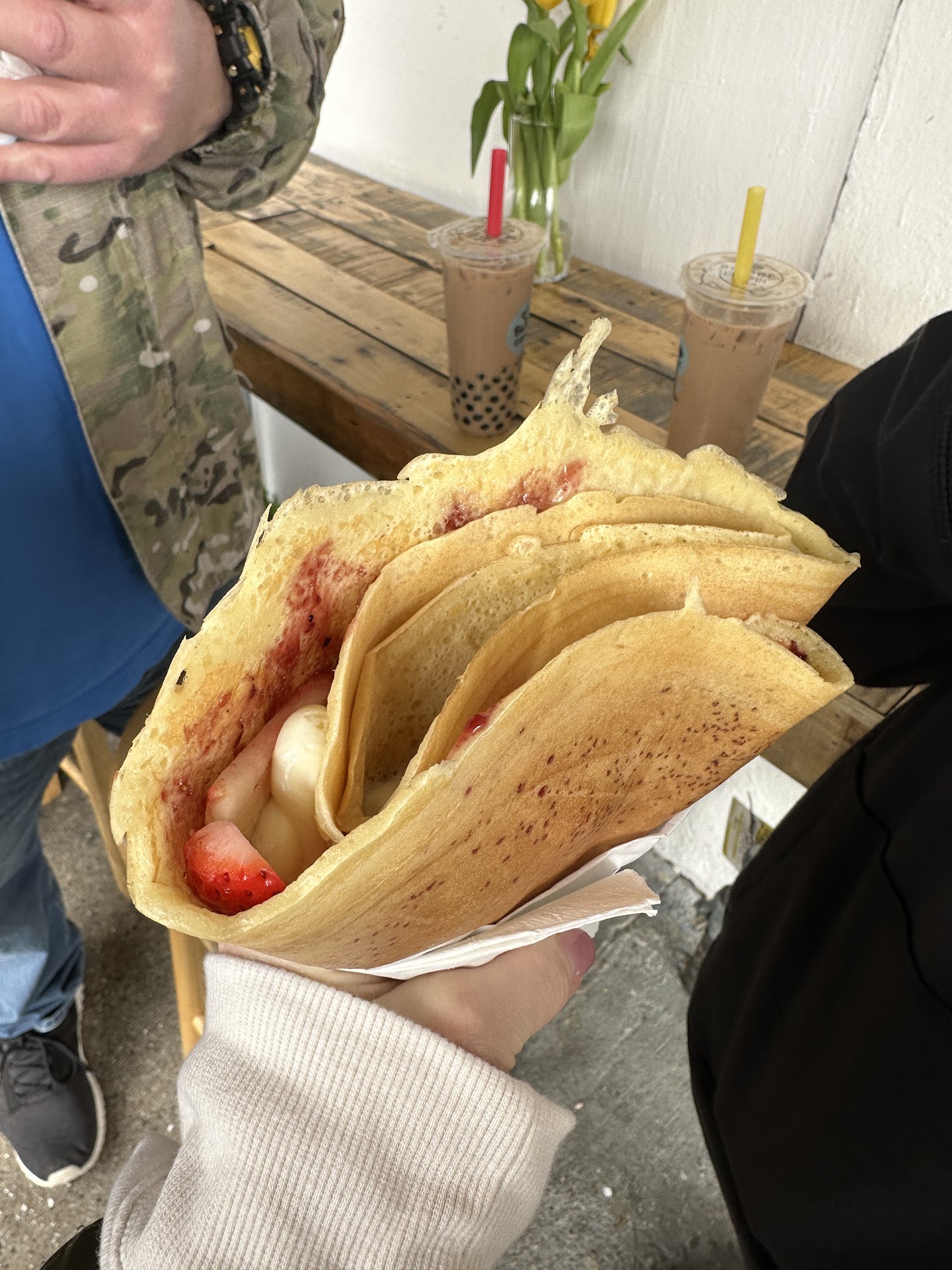 My partner and I came across this spot by random, and since have been returning back to it every time we're in Newport. It's not just the quality of the crepes themselves or the specialty drinks, its also the freshness of ingredients used in these items that really stands out to me. I've been a chef for over 10 years now and I notice quality when I see it and these people are nothing BUT quality. From fresh passion fruit or lychee in the actual drinks, to the goodness of their breakfast crepes and especially that mango crepe... i just had to leave a review (something I never do) because these people deserve it! Make this place your next stop in Newport and be greated by the kindest of owners and enjoy something truly delicious and wonderful, you...
