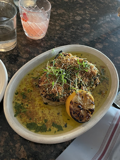 Our mains followed shortly after, and they were spectacular. The NY Strip was a perfectly cooked medium rare in the center with a crispy, flavorful crust. Each bite was better than the last. My partner’s halibut was equally impressive: a generous cut of fish cooked to perfection with a crunchy topping, lemon, and cilantro. It was too large to finish, so we boxed it up for later.