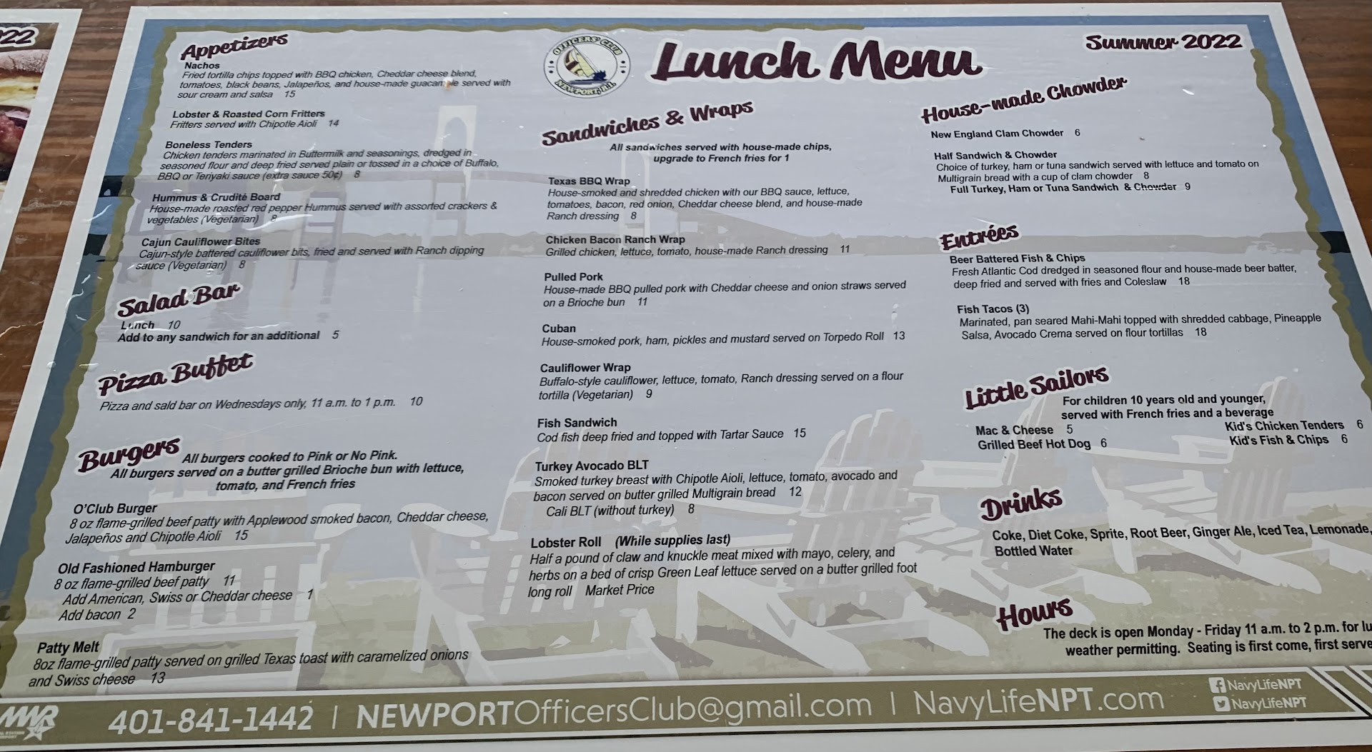 Website said they closed at 6 we walked in with a group of people to sit down and eat just befor 5 and all the chairs were put up on tables as if they were closed already. Took us about 5 minutes to find someone to help with seating/info??? Found someone sweeping in the back and we we told only the bars open untill 6, This place is on BASE!! This would have helped when looking places up too! Thankfully some of us had Military IDs. Great view from the patio. Unfortunately we weren't able...