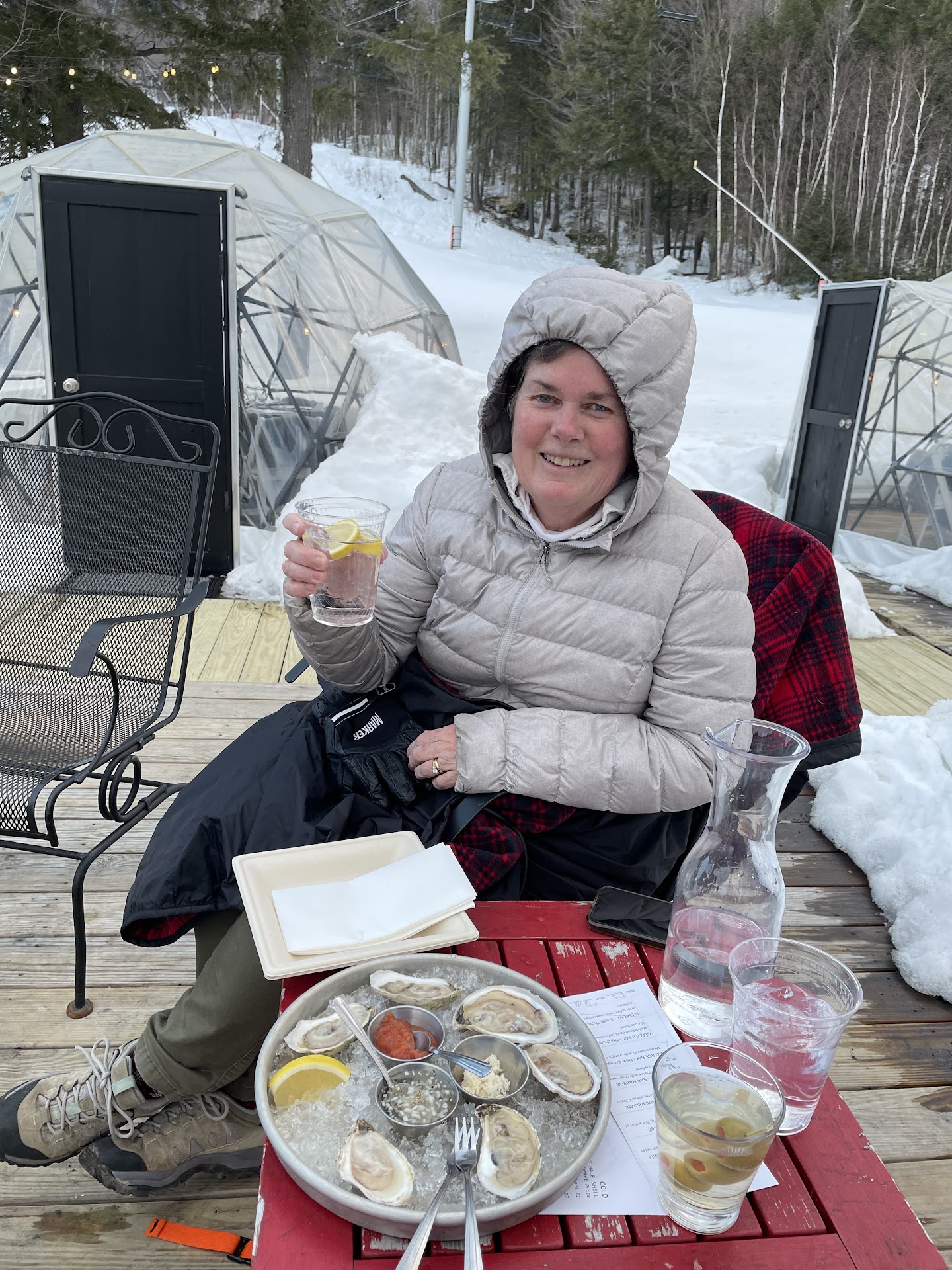Read moreA fun spot for aprés drinks and appetizers. Was impressed with the variety of oysters! They had heated seats and blankets for the outside fire pit. Tara was a great host for me and my mom…stoking the fire and making us feel welcome! The inside bar was cozy with a classy vibe. Everyone was super friendly…big shout out to the hostess who got us settled quickly. Wish it stayed open later since it could make for a solid hotel late night bar after closing...