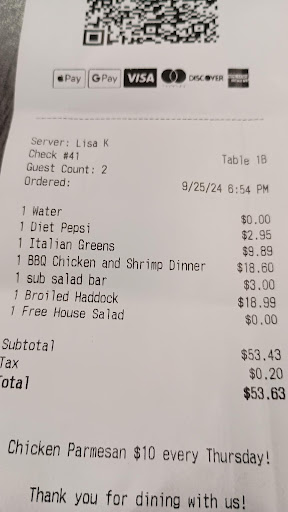 Read moreMy daughter and I went here tonight for her birthday. We've tried the food before but have never been inside. Let me just start by saying that the atmosphere was amazing. It feels very cozy and comfortable. It was also impressively clean and also felt like we were somewhere high end and a little fancy. Like you could dress up or down and still feel like you fit in. The service was amazing. Leann was our server and she was just so nice and accommodating. It was very busy, but she still managed to be amazing to us and everyone she served. And the food was SPECTACULAR. My daughter got angel hair spaghetti and I got the chicken Tosca and I have never seen my daughter eat so much or so fast than she did that spaghetti lol. And I was a bit upset that I got full when I did because the taste of the chicken Tosca was SO GOOD. We are definitely excited to dig into our leftovers tomorrow! And that's another thing, we got a good amount of food for a good price. You could go here for a date night, family night, group get together or just a stop in and be satisfied. Overall, it was a wonderful experience and made for a...