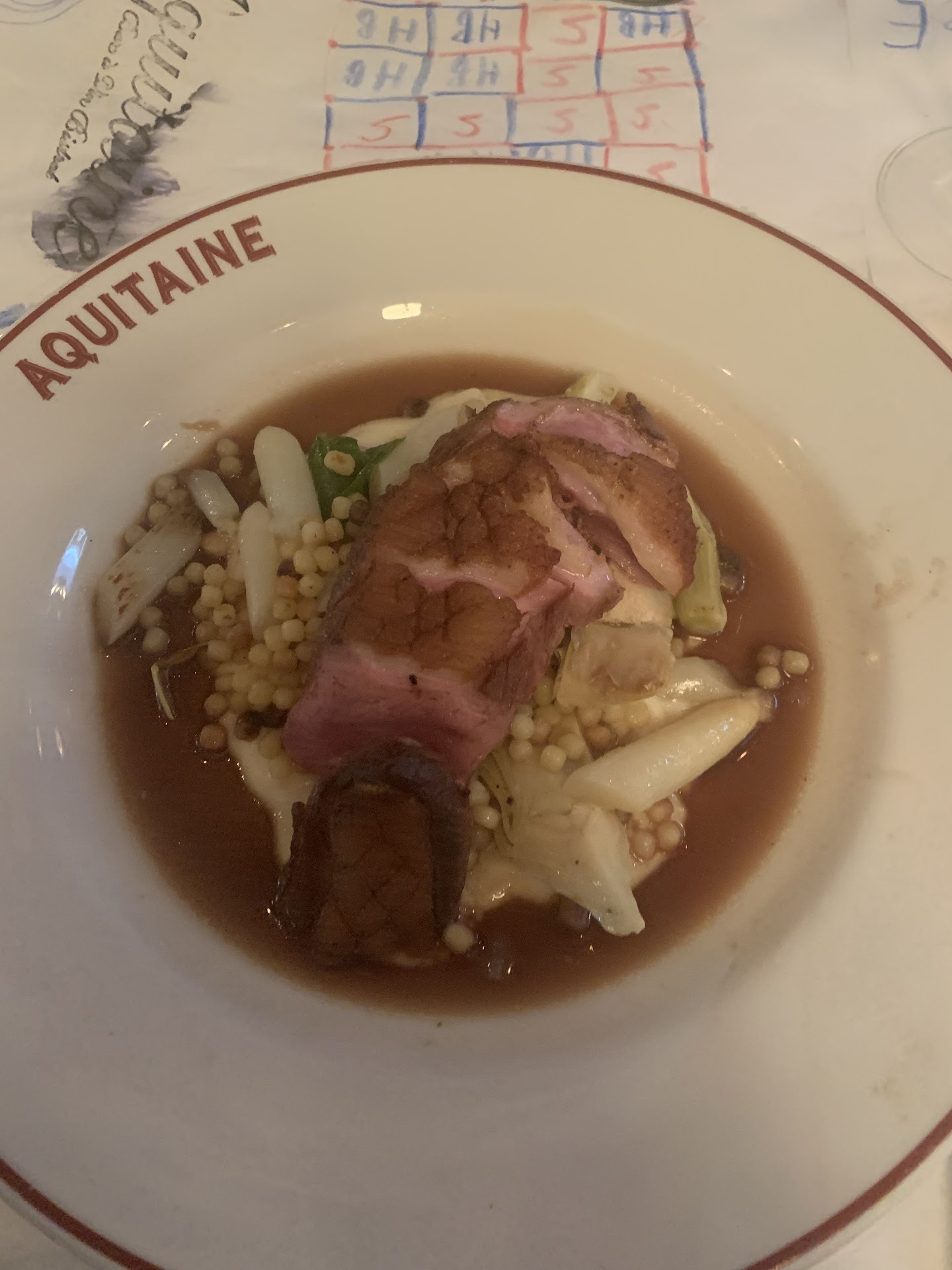 Read moreI have been going here since 2010 and things have gone really downhill in the last years. The dinner I had ladt night was definitely the worst yet. First of all let me say that the place was very empty so the service should have been excellent...it wss NOT!!. The waiter's accent was so thick you could hardly undrtstand the specials. Both he and the wine steward, though polite, were very poorly...if at all...trained. To put down fresh silverware, for example, he reached all the way across in front of another member of our party rather than going around the table to the person needing the cutlery. He also stood in one place to clear the table, asking us to hand him the plates. The staff wad so inattentive that a member of our party had to actually get up and pour the wine that was cooling himself. Given the prices this is inexcusable, at the local hamburger place ok but not at Aquataine. Then there was the food. Evety dish I ate was cold. The fig and goat cheese tart (spelled without the final"e" as it should be) was cold, the crust greasy and there was no recognizable goat cheese in it. I had the shortribs special. If I couldn't make better shortribs, I'd close my restaurant. It was a huge portion of meat but was cold, tough and tasteless. I love shortribs but what a huge disappointment these were. For dessert I had the profiteroles. These used to be amazing, 2 as big as a fist with a whole scoop of vanilla bean ice cream each and warm, dark chocolate sauce, a whole pitcher full..now they are a joke! The pate choux was well made, I'll give them that but they were about the size of a walnut, the sauce cold, gloppy and in a small coffee cream pitcher. This was my folks 65th wedding anniversary, such a rare occasion...unfortunately the meal was not fittingly rare. After all these years I really don't see myself going back there, such a shame. I love a good French bistro, but...