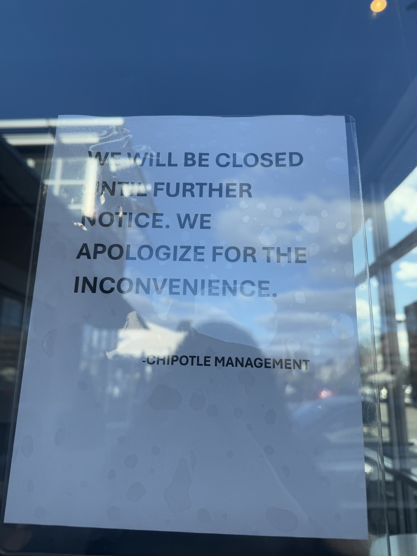 Walked out. Decided to leave this review, the first time I've ever done so. Yes, there are much bigger problems in the world. There are also much better places to spend your money. Skip this Chipotle. They suck. Truly.