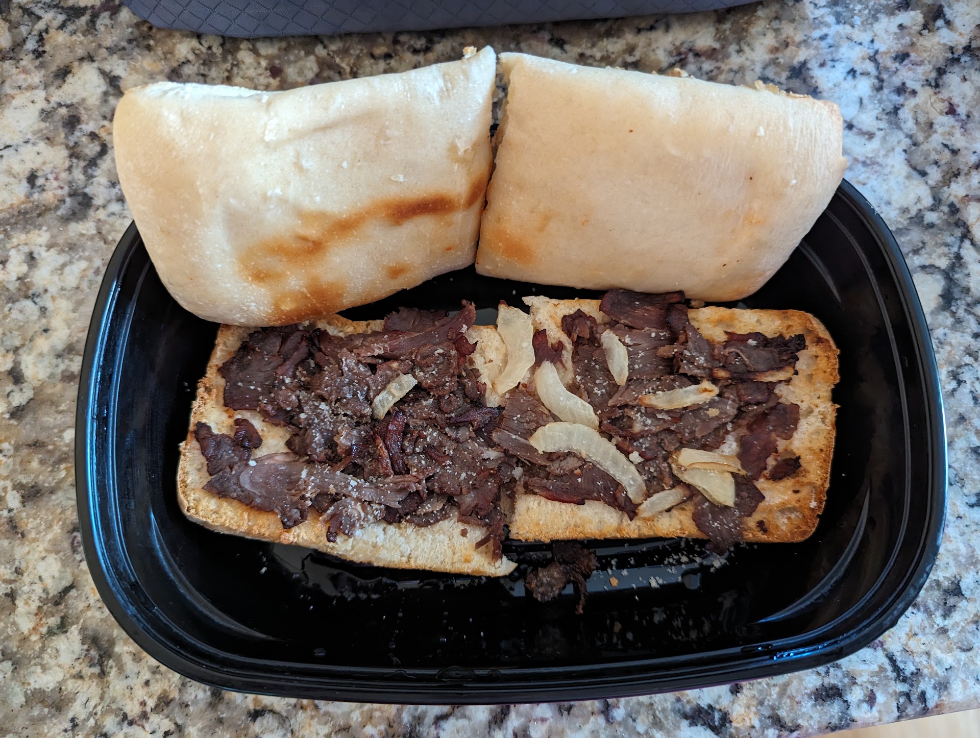 The cheese steak sandwich is a failure and is not worth it. The cheese steak sandwich I ordered did NOT meet expectations. I ordered light onions and light mushrooms. My sandwich was basically featured mushrooms, onions, and bread so it was a hunting expedition to find the steak. I did find the cheese stick to the bread.