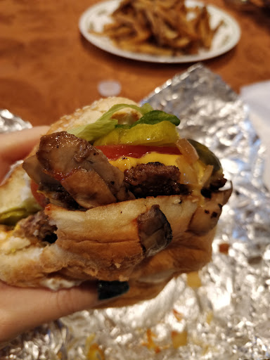 Read moreI found Five Guys when looking for a burger joint to have a Mother's Day cheat meal and decided to give it a try. I've been driving past this place for years and had no clue it was a burger joint. They have on-line ordering and this is something I love so I don't have to wait around should a place be crowded. The place was very clean and the employees were very busy working - unusual in some places - and everything was clearly marked so even I knew where to go pick up my burger and fries. As soon as I approached the area I was offered assistance, said my name, got the waiting bag and told me I can pick up my shake at the end of the counter. Well, wow! there were 2 beef patties - huge in comparison to the 'filler patty' guys down the road. The taste was so good so good, cooked perfectly, smelled inviting and I ate that baby like I had never indulged in a burger before. I actually loved the fries as well! I usually don't get fries because I just don't like them but, hey, it's Mother's Day. they were cooked to a nice golden fry brown with an awesome tater taste - the way they were meant to be. My special indulgence was a coffee shake - because you have to in a burger joint! My goodness! so creamy, so coffee-y, so good going down. the worst part about this whole thing is it had to end. the good thing - I'll be sneaking back more often now I've discovered a real burger joint in the neighborhood. Oh, there is plenty of parking too. Thanks Five Guys for making my Mother's Day wonderful after all - my first without any of my kids with me -...