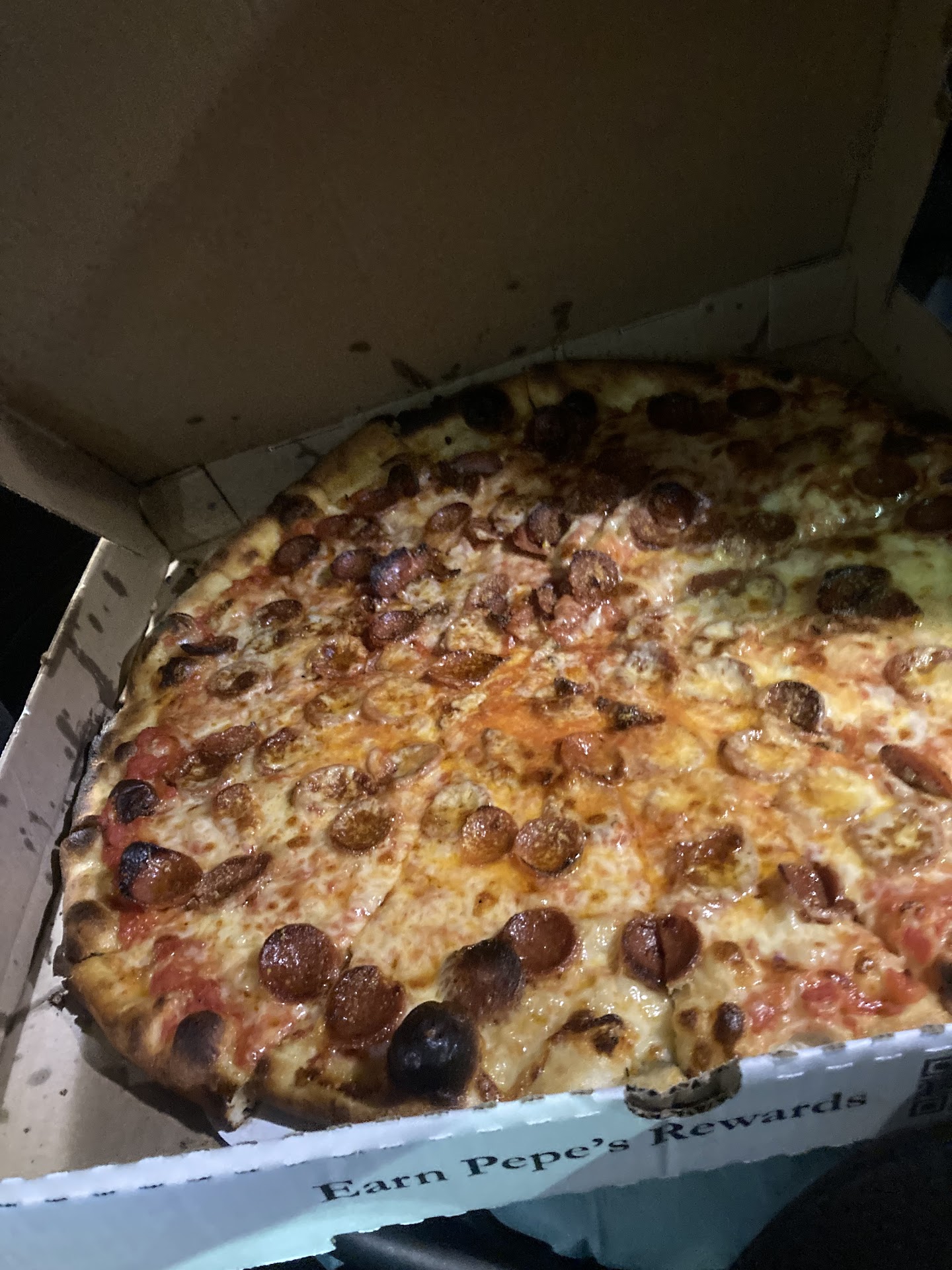 So far, each of my Pepe pizzas has been covered with toppings all the way to the edges, unlike some pizza joints that leave big spaces with just a little sauce or cheese.
