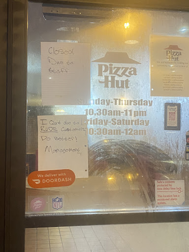 Highly disappointed. 1st issue: Charged $14.58 in restaurant for what I stood in front of register and ordered take-out for $8.86-When I asked what the $5.72 difference was he just shrugged his shoulders and smiled. I showed him the difference on my phones Pizza Hut mobile app and he said “Uh I don’t know I can get with our manager I don’t think we honor app prices”. I told him it was prices for pick-up in THEIR location. He goes “I will just put our employee discount on your bill if that’s ok”….that made my bill $9.26…I was like close enough. 2nd issue: I ate IN RESTAURANT. He brought me food and my drink. First of all my drink was in a small PAPER cup the size of a small coffee. It was never refilled. Second of all I ask for napkins and a fork and he brings me a plastic fork and napkin wrapped in plastic (like you get from fast food take out). 3rd issue: When I asked for Parmesan Cheese…because there was none on the table….I was told I had to pay $1.99 for a shaker as seen below in picture. Asked if I could just get a packet of Parmesan cheese-I was told they did not have those because management will not order. Do what? The whole pizza concept includes Parmesan cheese being ON THE TABLE. I told him not to bother I was not paying $1.99 for 0.88 ounces of cheese. He watched me take the picture and just smiled. 4th issue: The lunch special advertised all over TV and internet….Not available. Why? Management don’t agree with it so they don’t have it.