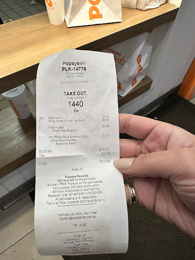 It's a shame. I was excited for Popeye's to open so close to my house. But I will not ever return to this location. There are plenty of other non-fast food places nearby to get better food at similar prices where you will get far better quality food much faster.
